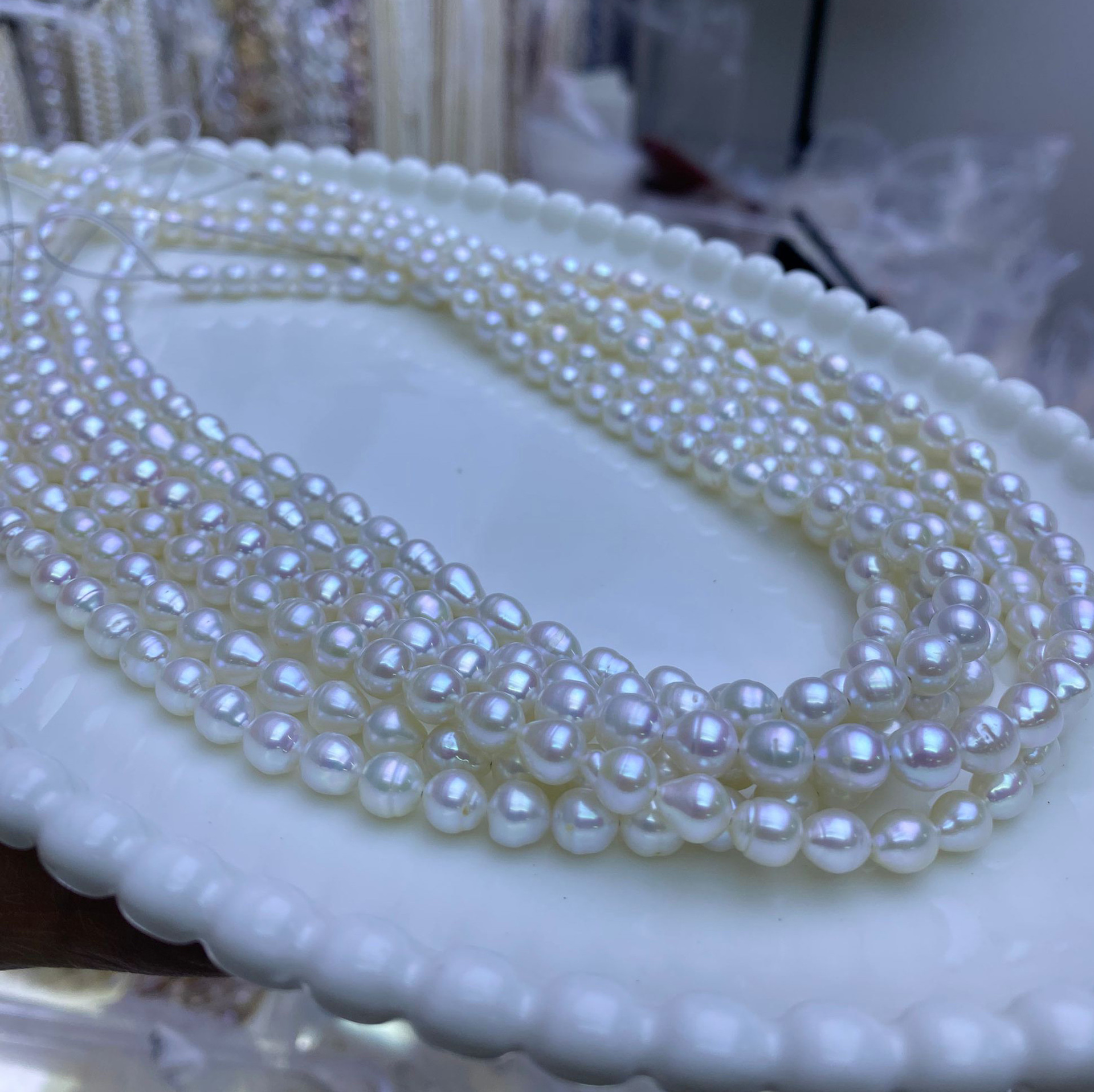 Perles nacres baroques de culture d'eau douce , perle d'eau douce cultivée, DIY, blanc, 5-7mm, Longueur:38 cm, Vendu par brin