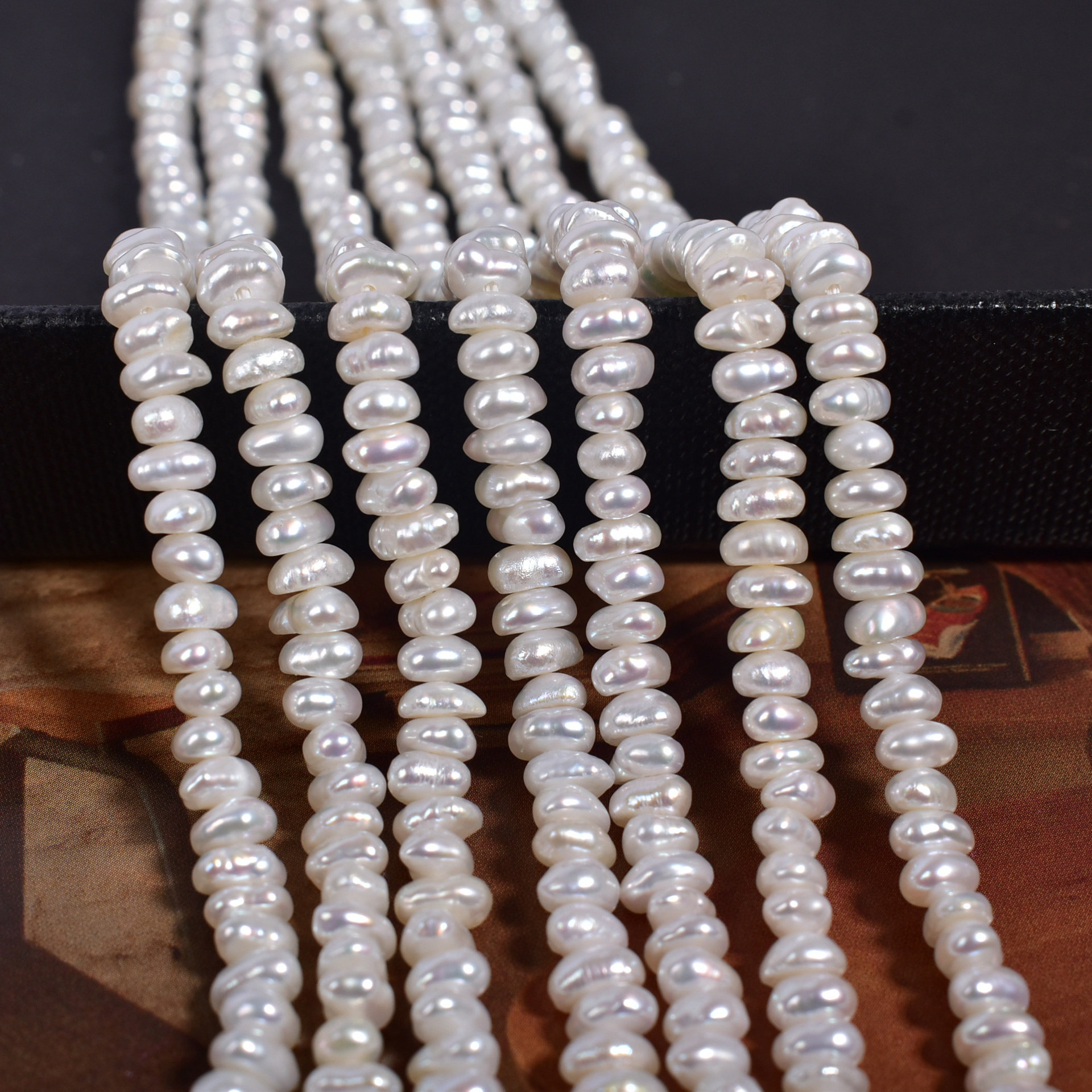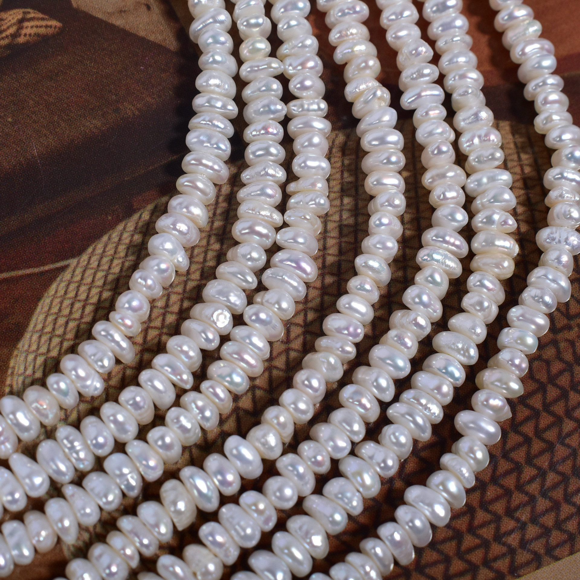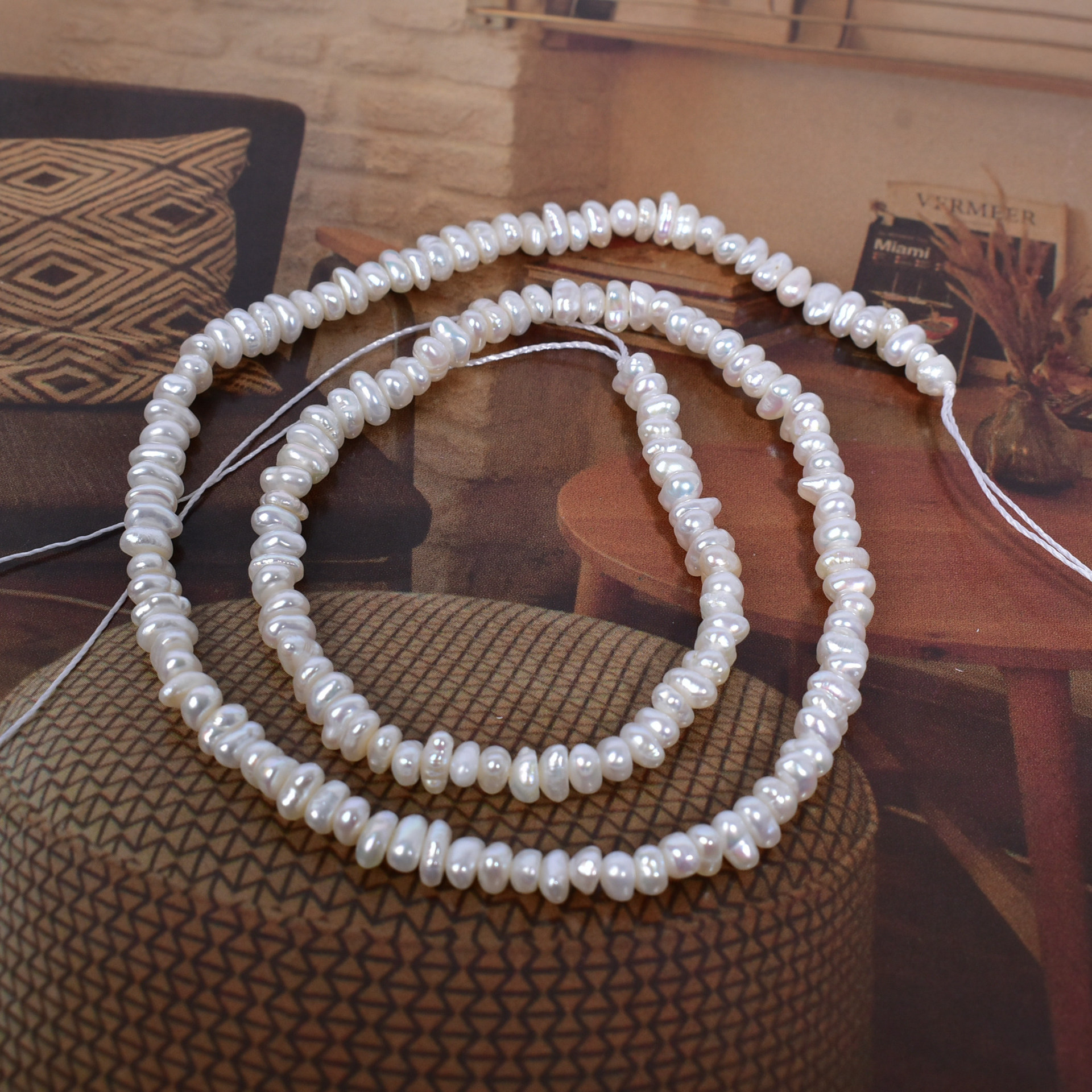 Perles nacres baroques de culture d'eau douce , perle d'eau douce cultivée, Irrégulière, DIY, blanc, 3-4mm, Longueur:38 cm, Vendu par brin