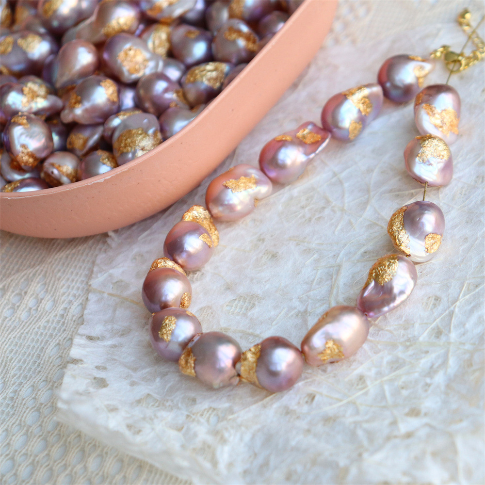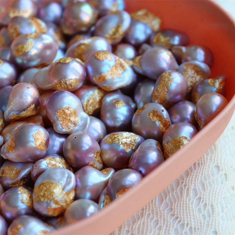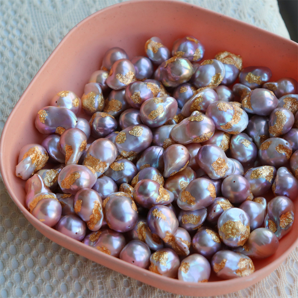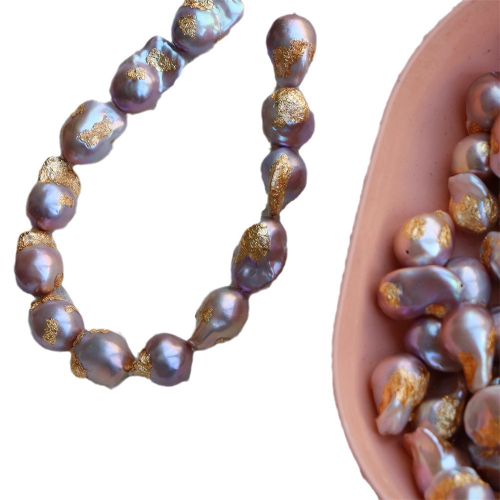 Perles nacres baroques de culture d'eau douce , perle d'eau douce cultivée, avec Feuille d'or, Placage de couleur d'or, DIY, plus de couleurs à choisir, 12.5-15mm, Vendu par PC