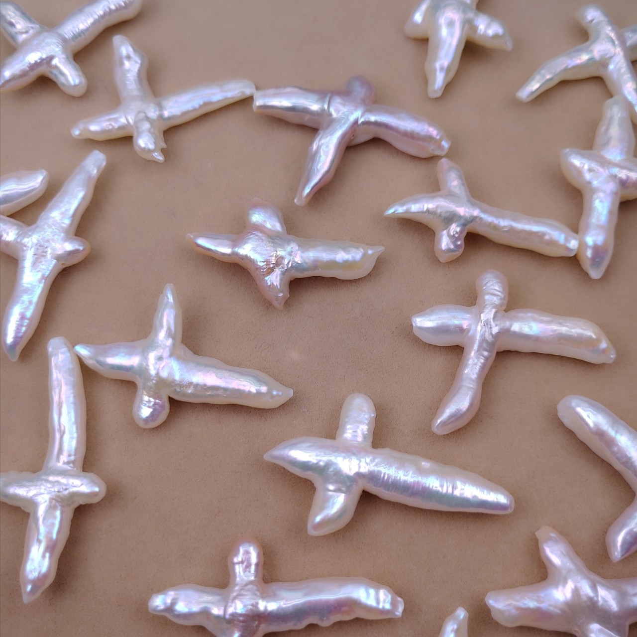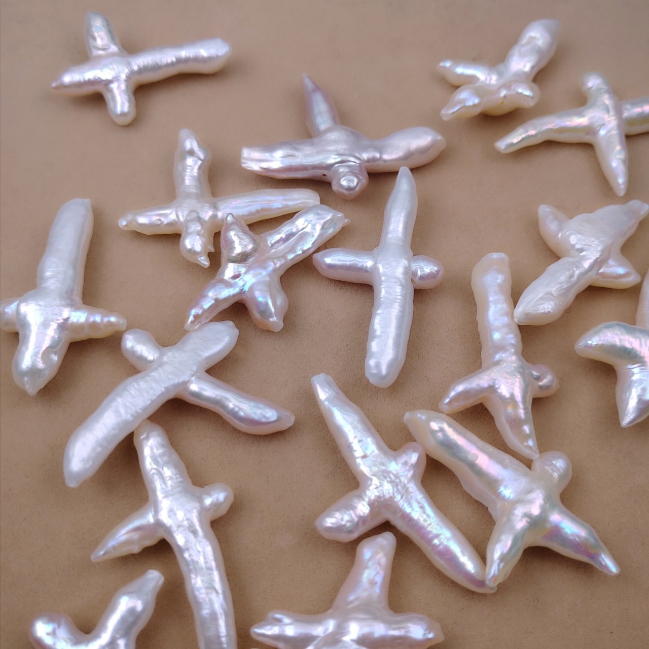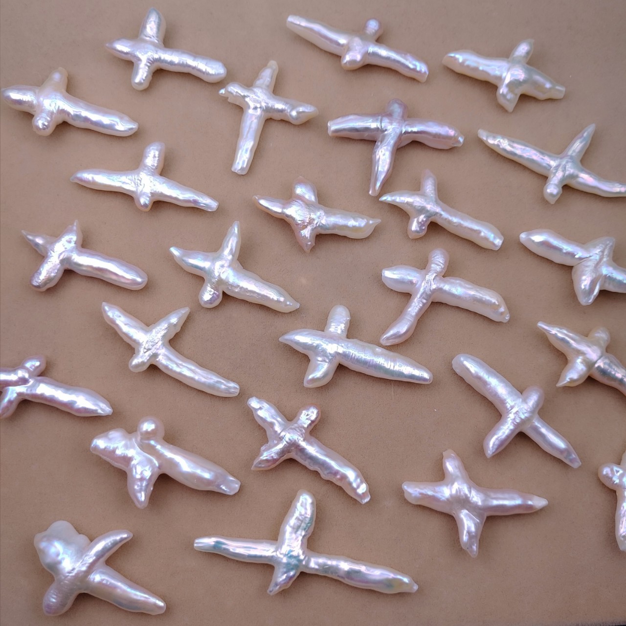 Perles nacres baroques de culture d'eau douce , perle d'eau douce cultivée, croix, DIY, blanc, 15-30mm, Vendu par PC