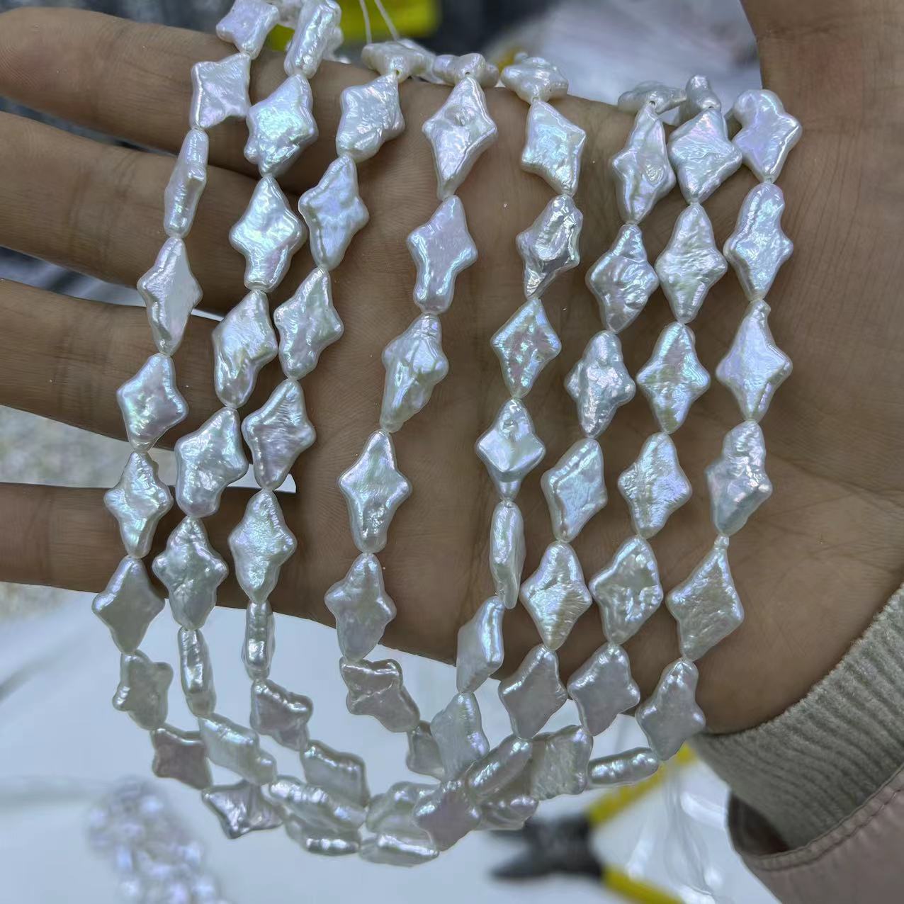 Perles nacres baroques de culture d'eau douce , perle d'eau douce cultivée, DIY, blanc, 10x15mm, Environ 25PC/brin, Vendu par brin