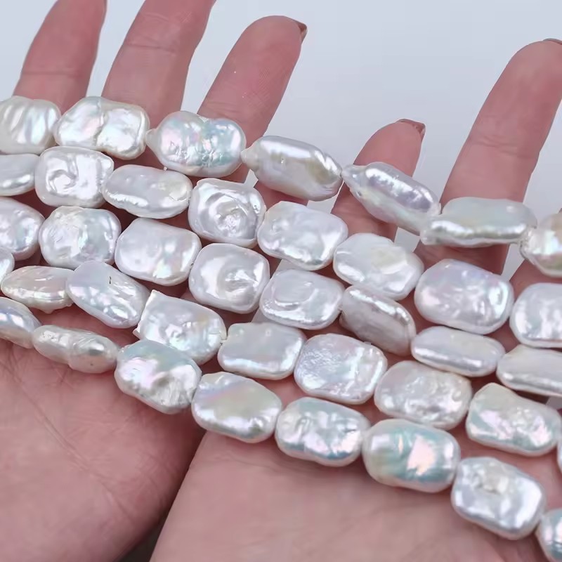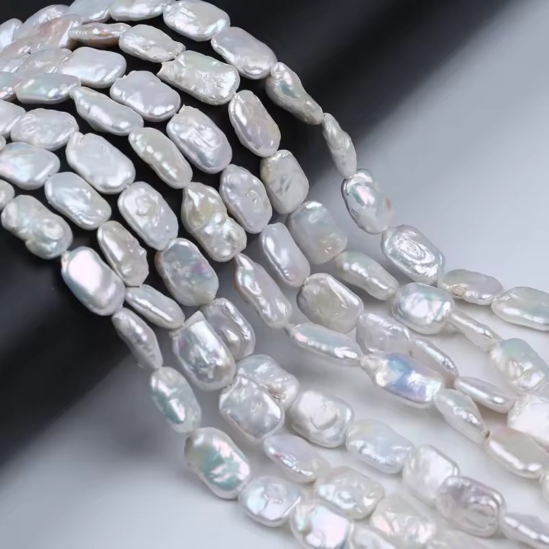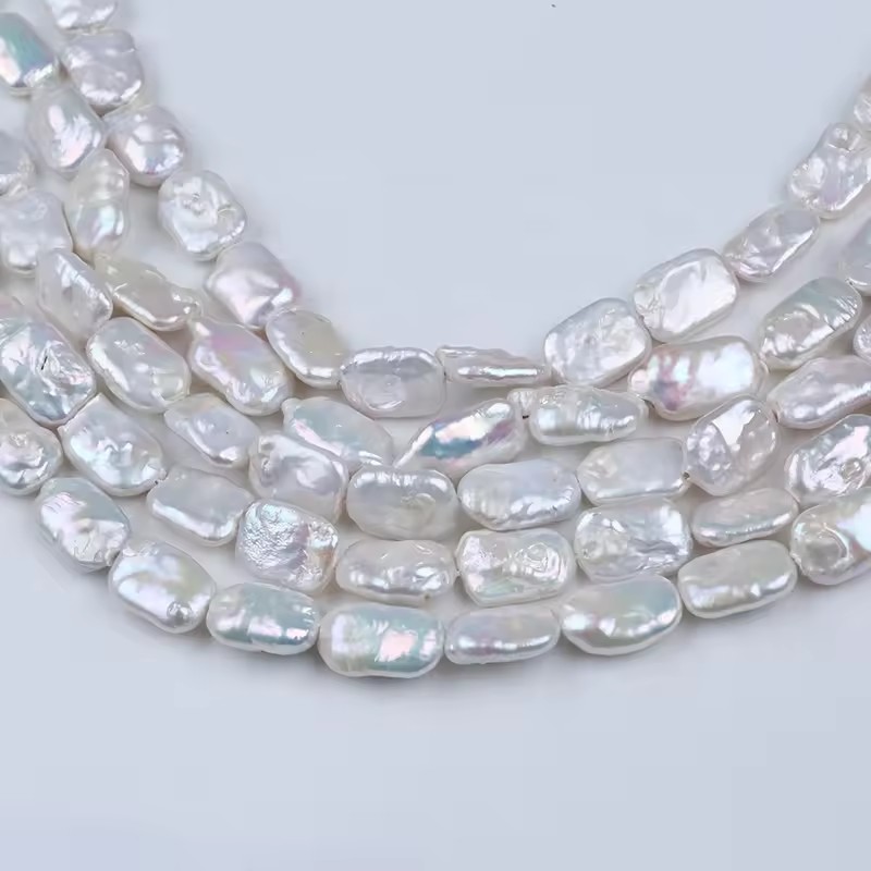 Perles nacres baroques de culture d'eau douce , perle d'eau douce cultivée, rectangle, DIY, blanc, About:12-14mm, Vendu par brin