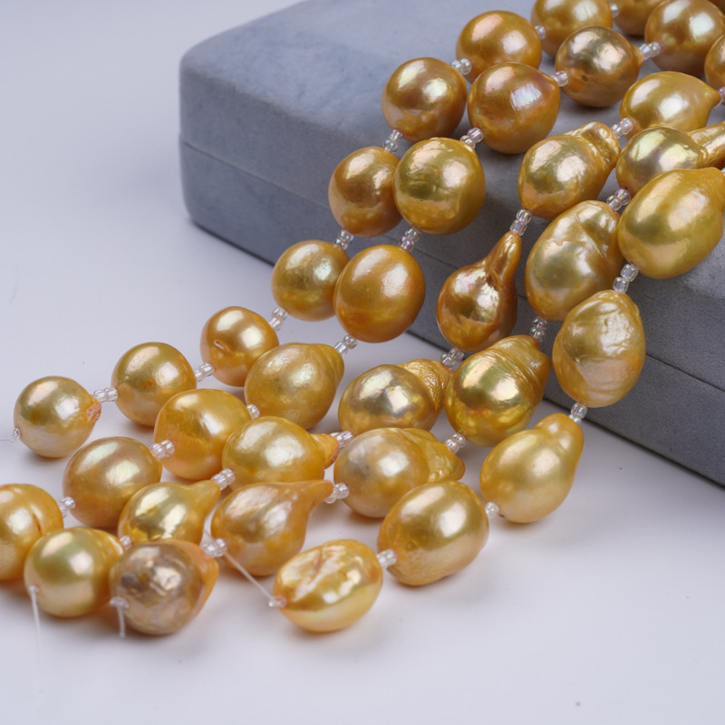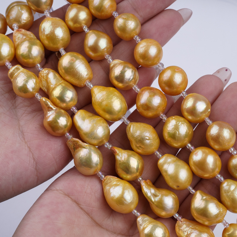 Perles nacres baroques de culture d'eau douce , perle d'eau douce cultivée, Irrégulière, DIY, Or, About:13-18mm, Longueur:18 cm, Vendu par brin