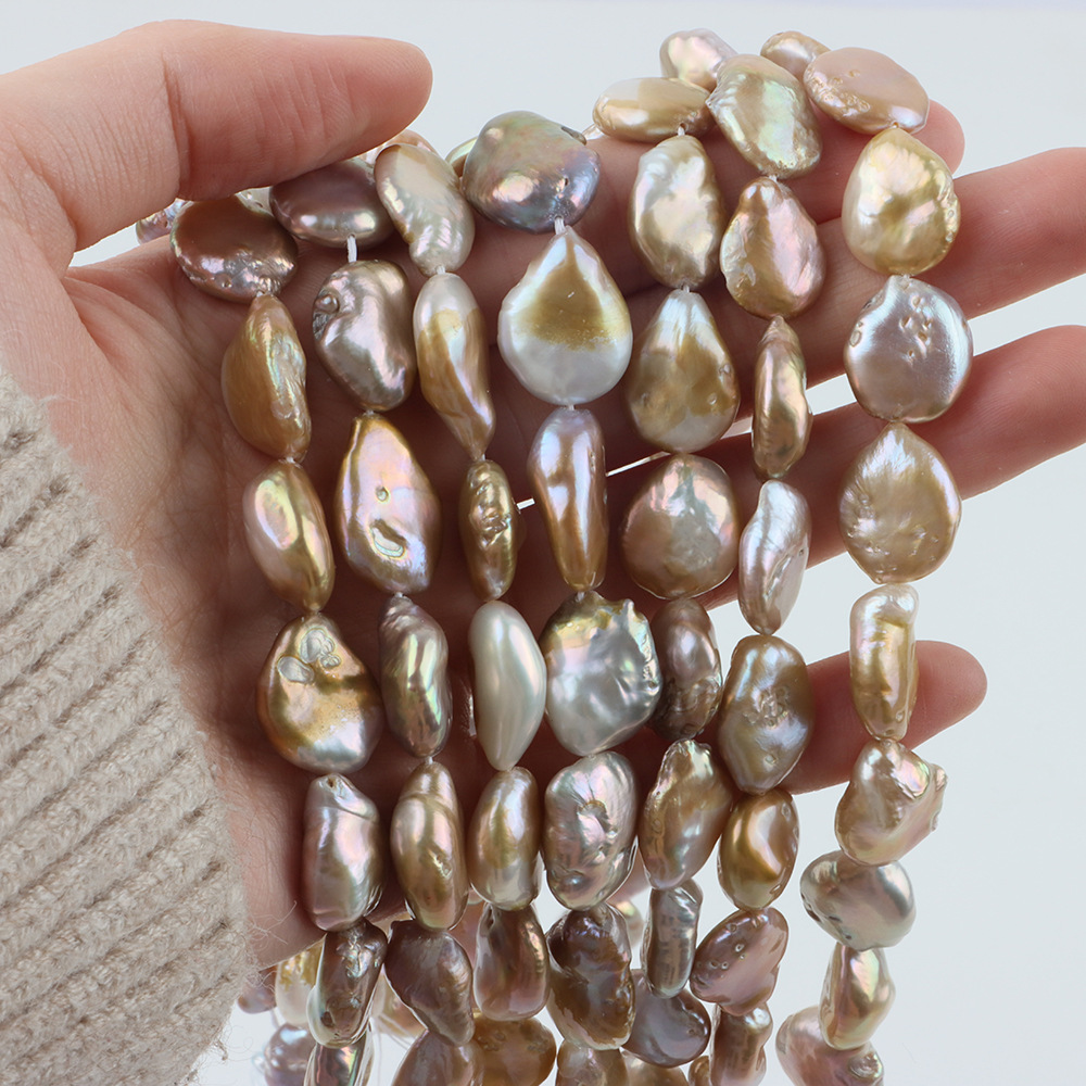 Perles nacres baroques de culture d'eau douce , perle d'eau douce cultivée, DIY, About:13-14mm, Longueur:40 cm, Vendu par brin