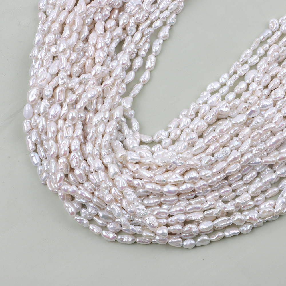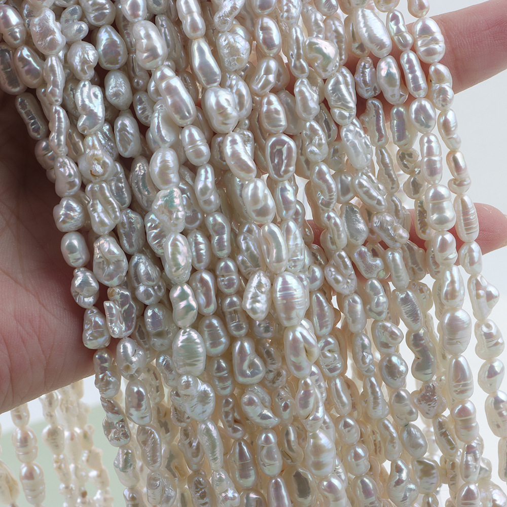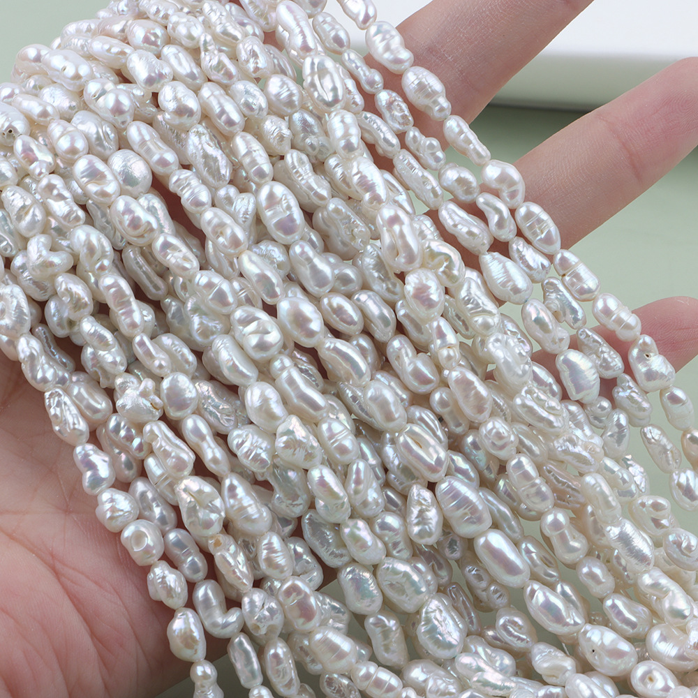 Perles nacres baroques de culture d'eau douce , perle d'eau douce cultivée, DIY, blanc, About:4-6mm, Longueur:40-41 cm, Vendu par brin