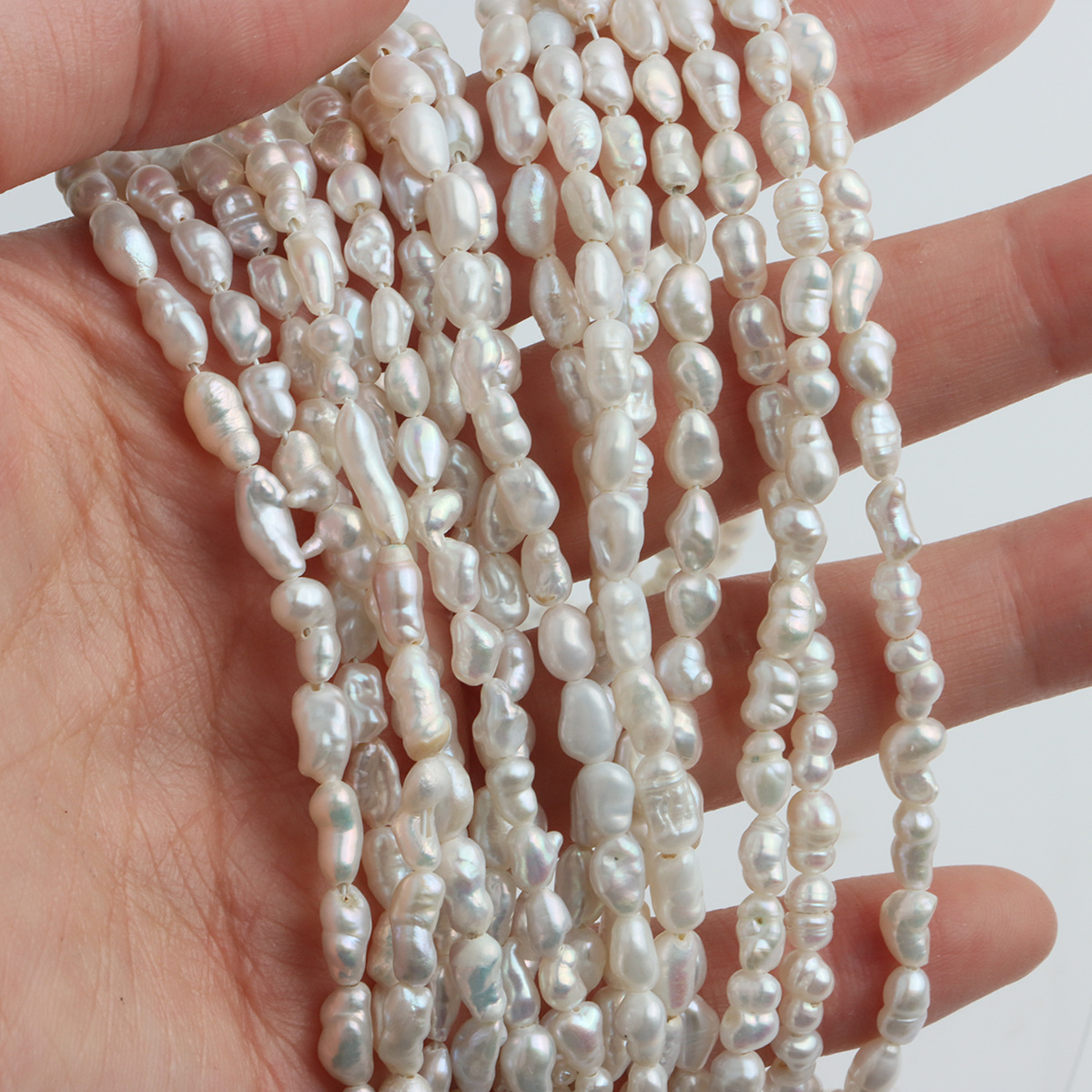 Perles nacres baroques de culture d'eau douce , perle d'eau douce cultivée, Irrégulière, DIY, blanc, About:4-5mm, Longueur:40 cm, Vendu par brin