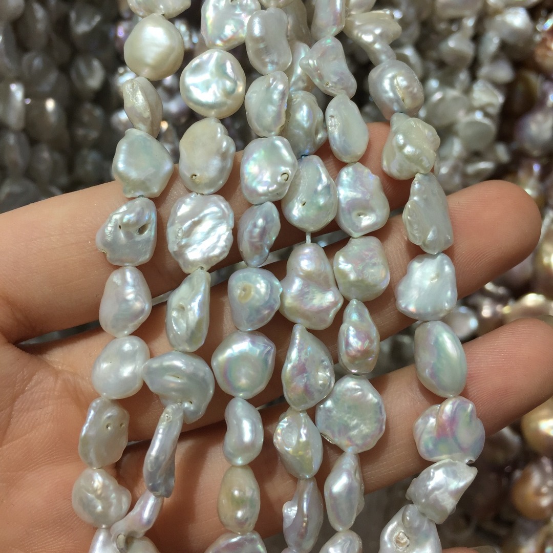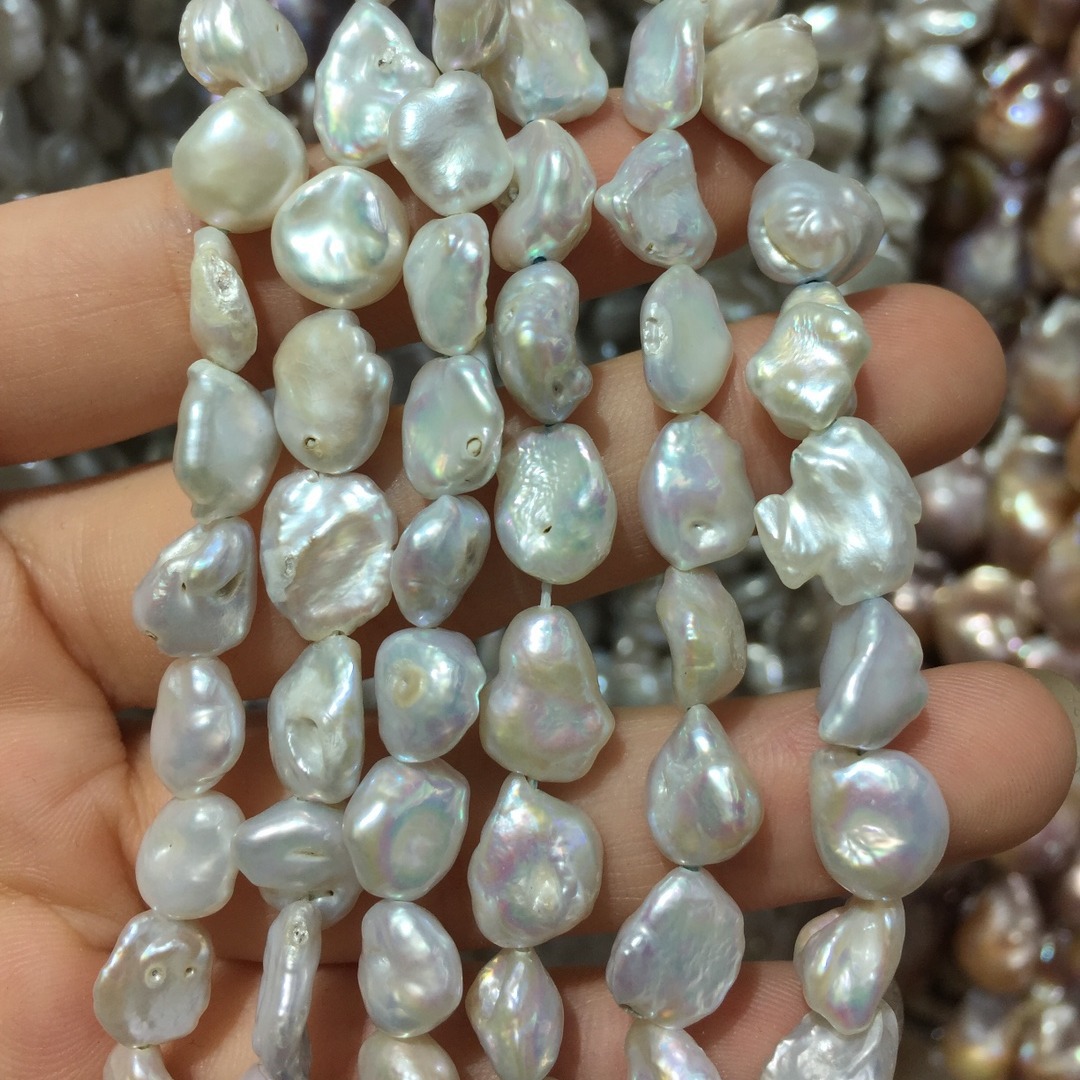 Perles nacres baroques de culture d'eau douce , perle d'eau douce cultivée, naturel, blanc, Niveau AA, 12-16mm Environ 0.8mm Environ 15 pouce, Vendu par brin