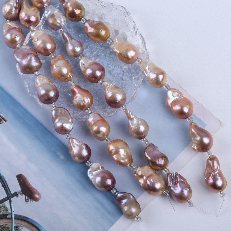 Perles nacres baroques de culture d'eau douce , perle d'eau douce cultivée, DIY, rose pourpre, Longueur:18 cm, Vendu par brin