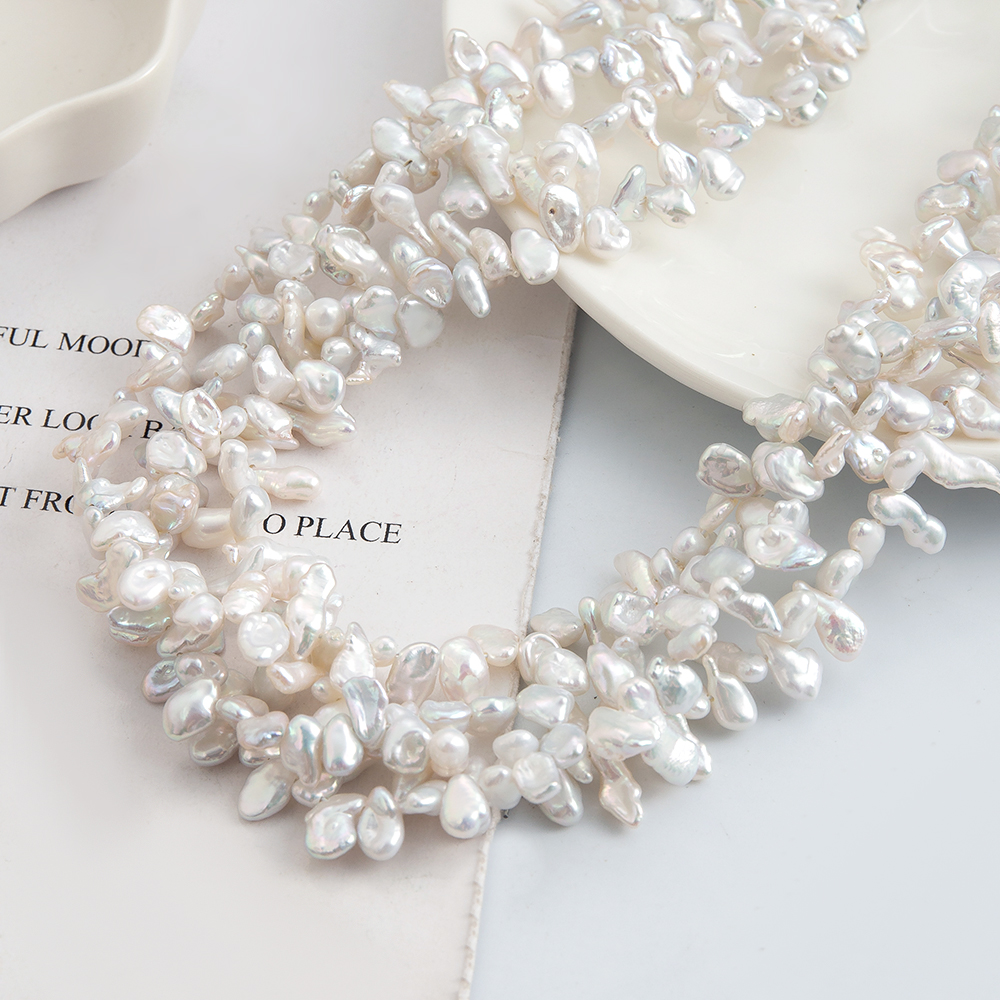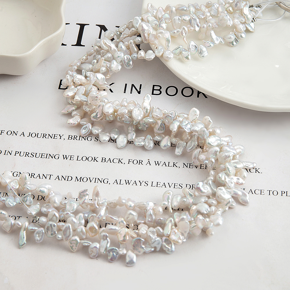Perles nacres baroques de culture d'eau douce , perle d'eau douce cultivée, Irrégulière, DIY, blanc, 7x5mm, 90PC/brin, Vendu par brin