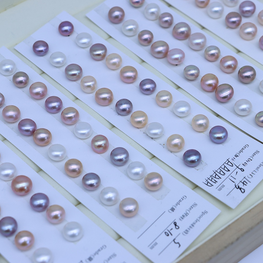 Perles nacres de culture d'eau douce demi percées , perle d'eau douce cultivée, Plat rond, DIY & semi-foré, plus de couleurs à choisir, 8-11MM, Vendu par lot