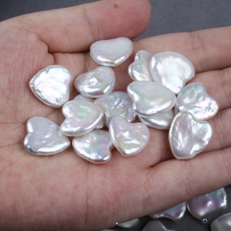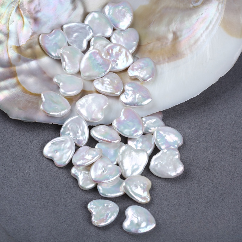 Perles nacres sans trou de culture d'eau douce, perle d'eau douce cultivée, coeur, DIY & aucun trou, blanc, 15x17mm, Vendu par PC