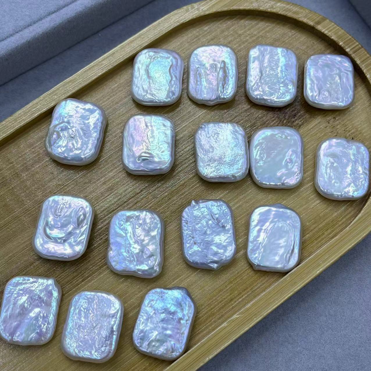Perles nacres sans trou de culture d'eau douce, perle d'eau douce cultivée, rectangle, DIY & aucun trou, blanc, 15x19mm, Vendu par PC