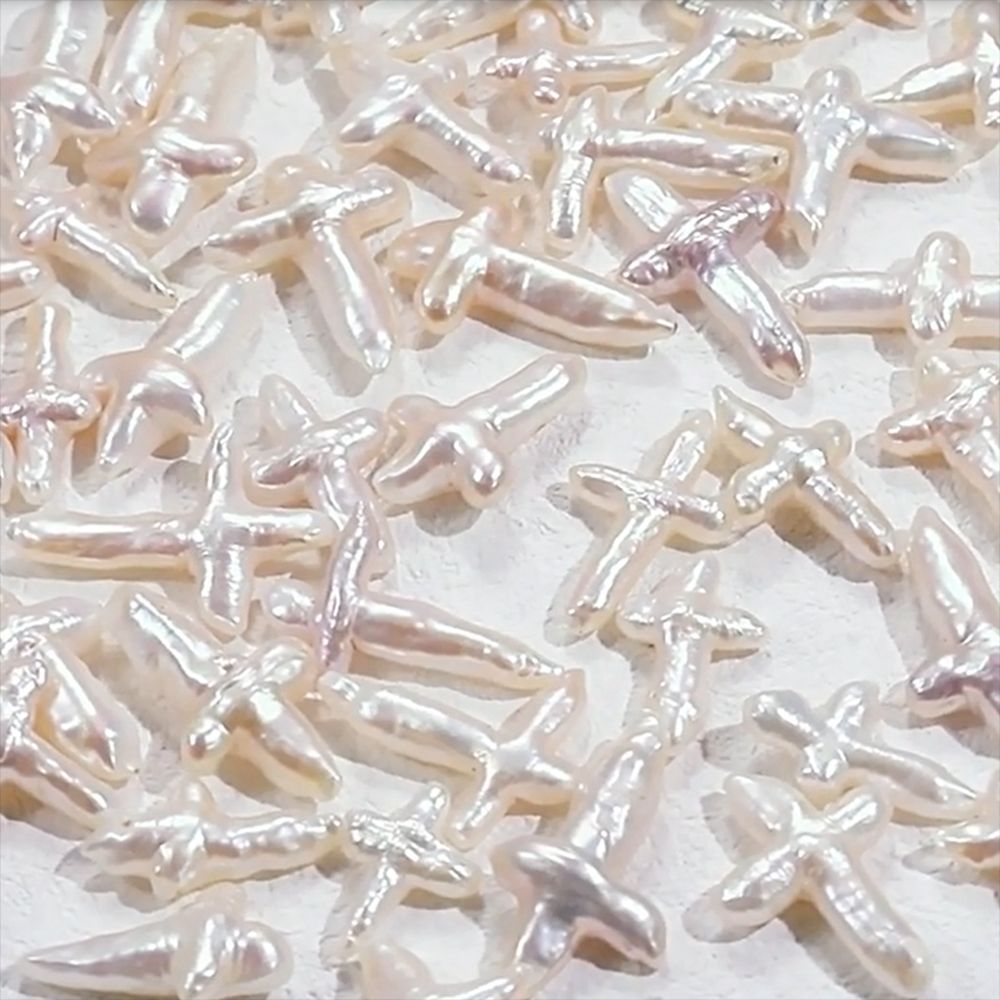 Perles nacres sans trou de culture d'eau douce, perle d'eau douce cultivée, croix, DIY, 25mm, Vendu par PC