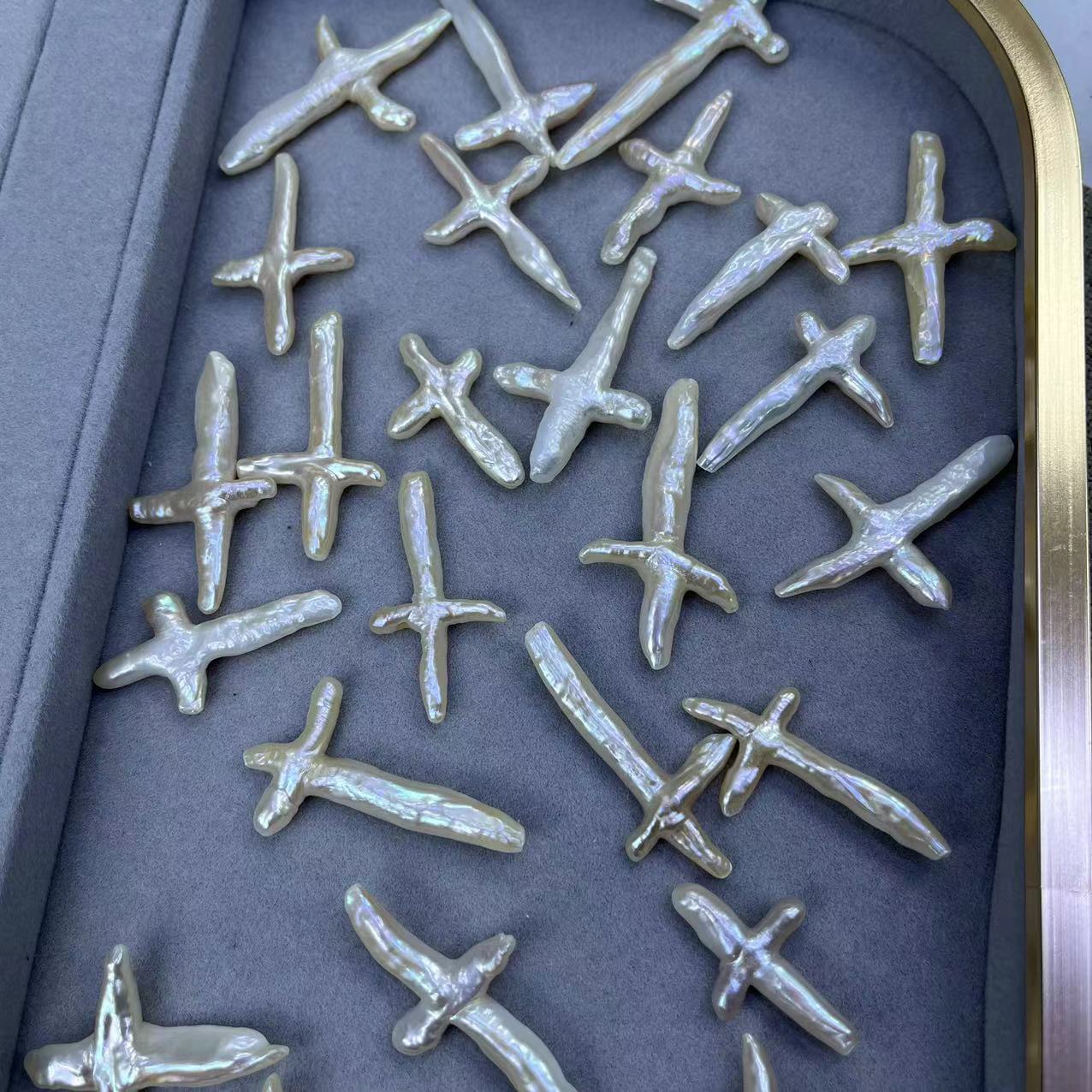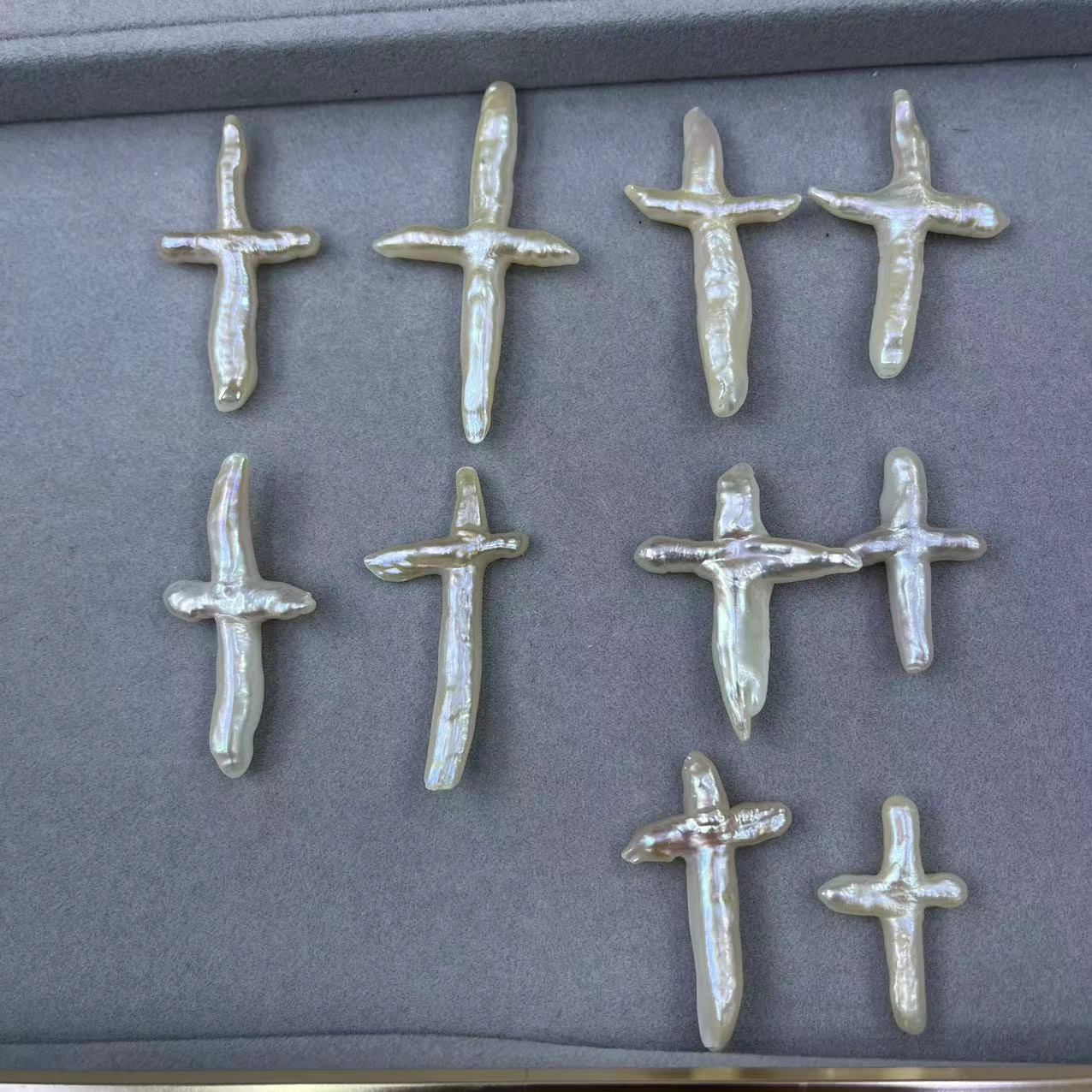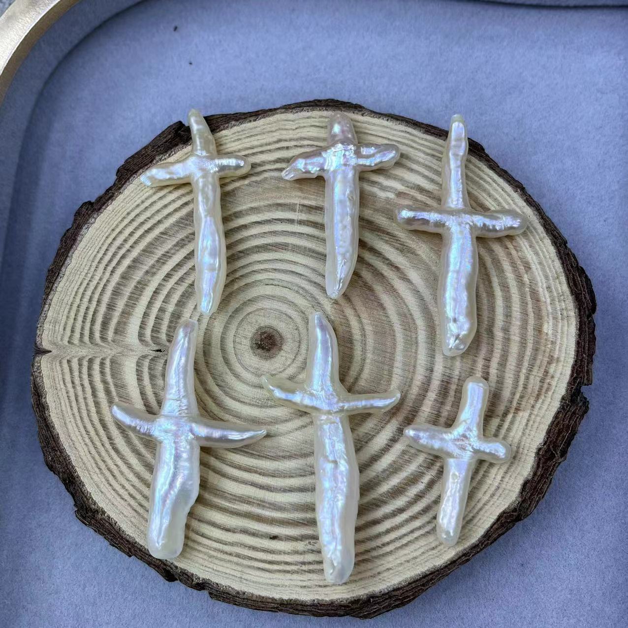 Perles nacres sans trou de culture d'eau douce, perle d'eau douce cultivée, croix, DIY & aucun trou, blanc, Length about 32-45mm, Vendu par PC