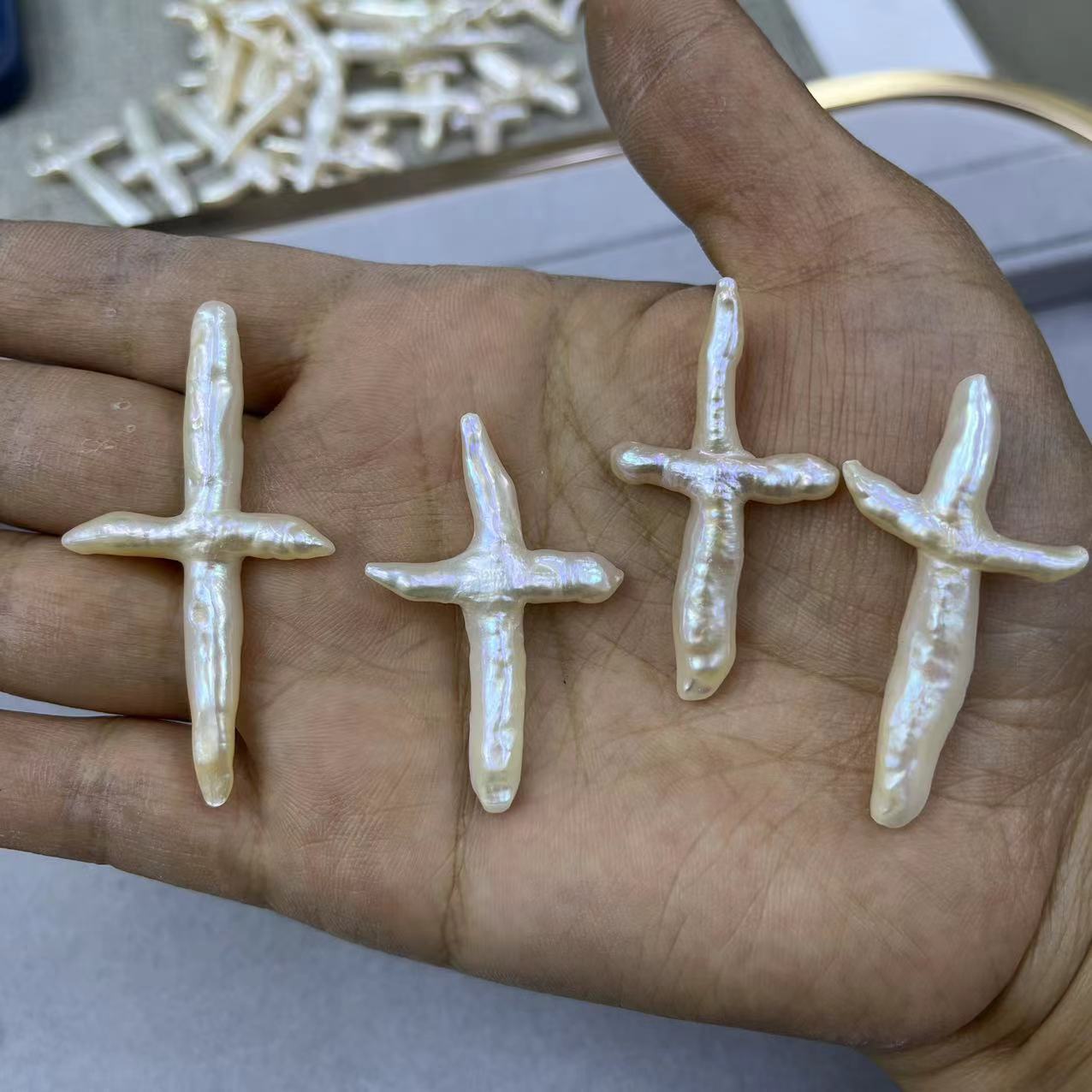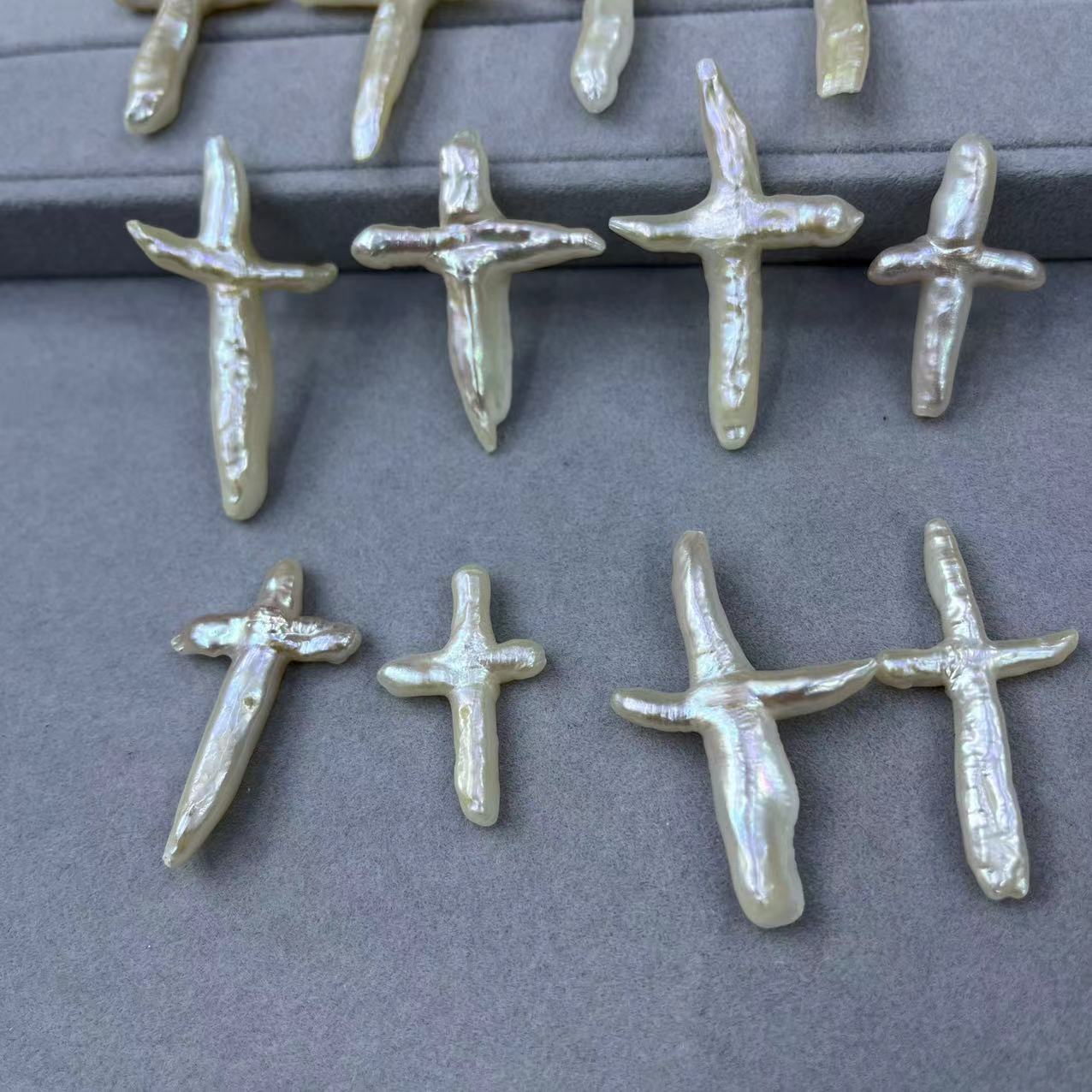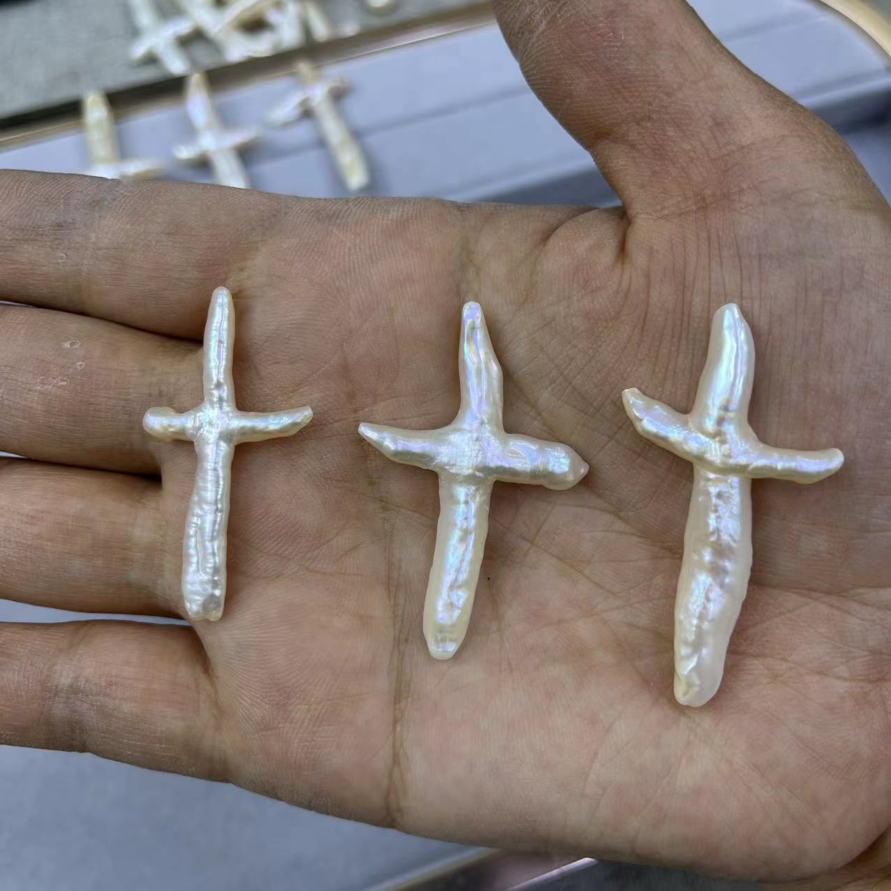 Perles nacres sans trou de culture d'eau douce, perle d'eau douce cultivée, croix, DIY & aucun trou, blanc, Length about 32-45mm, Vendu par PC