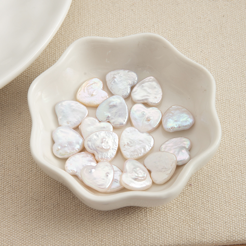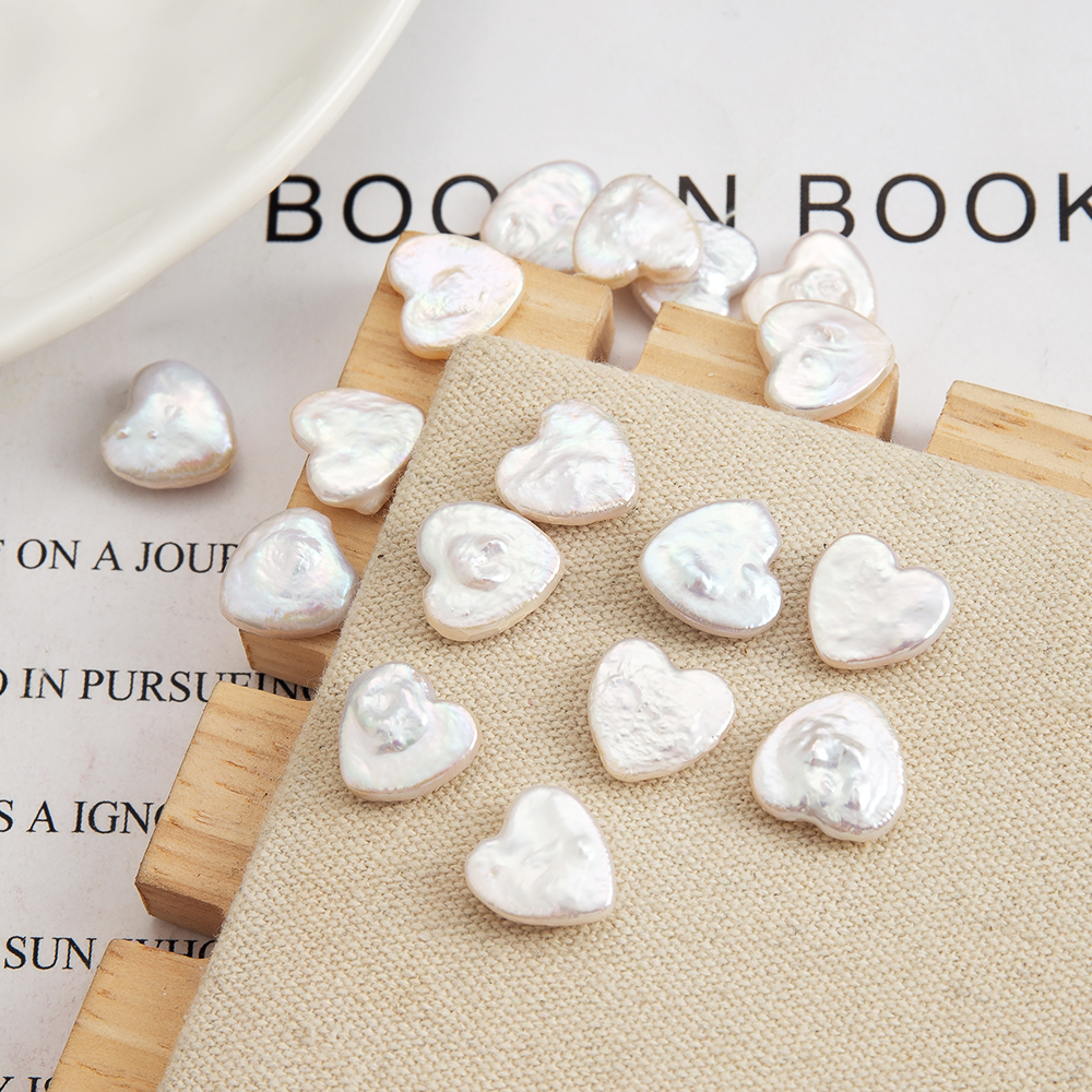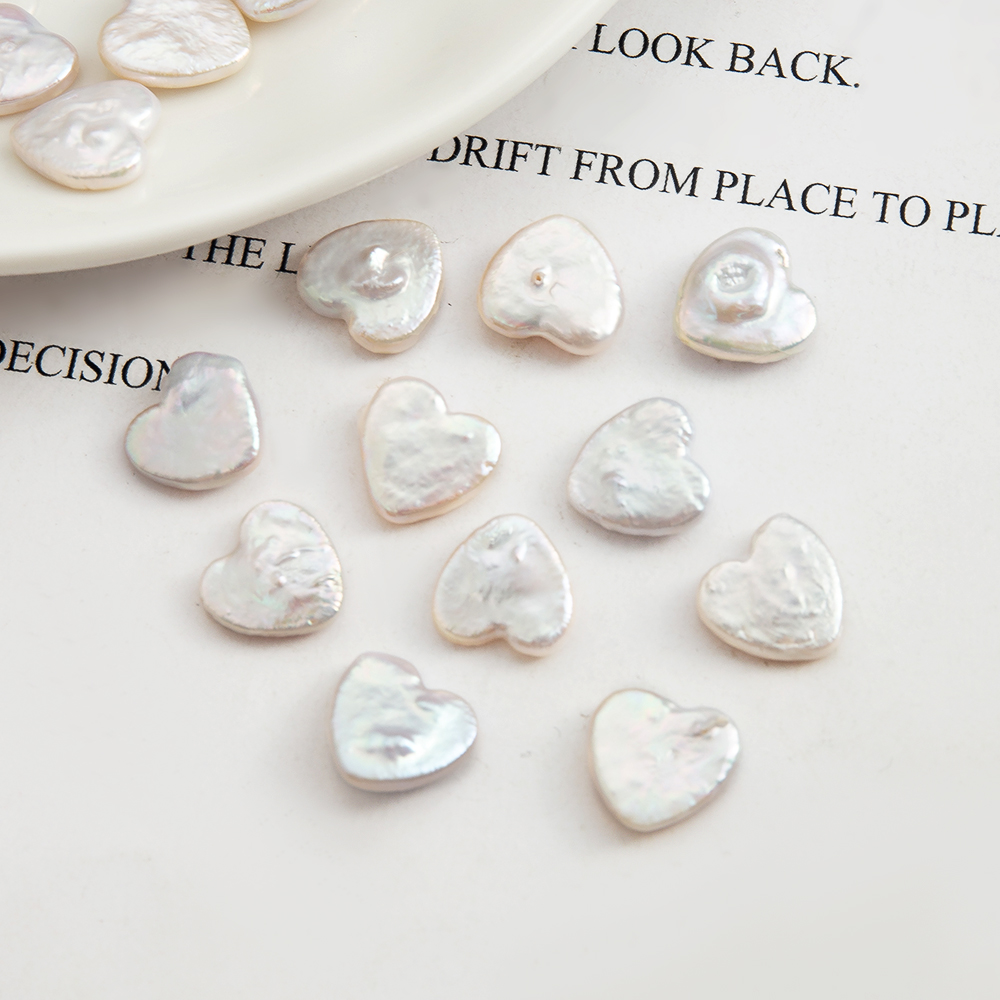 Perles nacres sans trou de culture d'eau douce, perle d'eau douce cultivée, coeur, aucun trou, blanc, 12x12mm, Vendu par PC