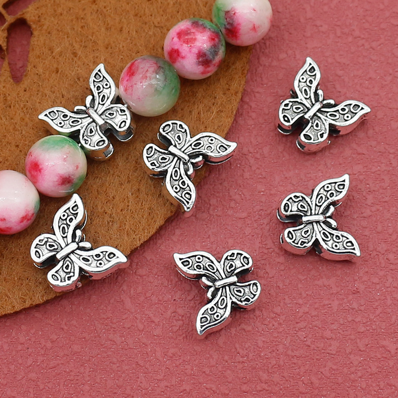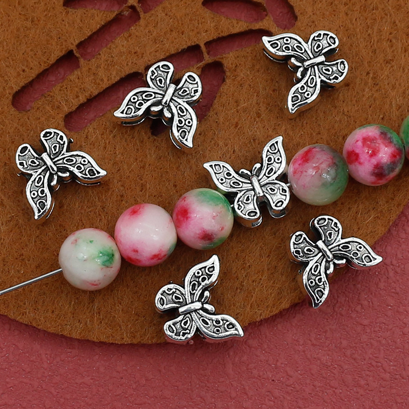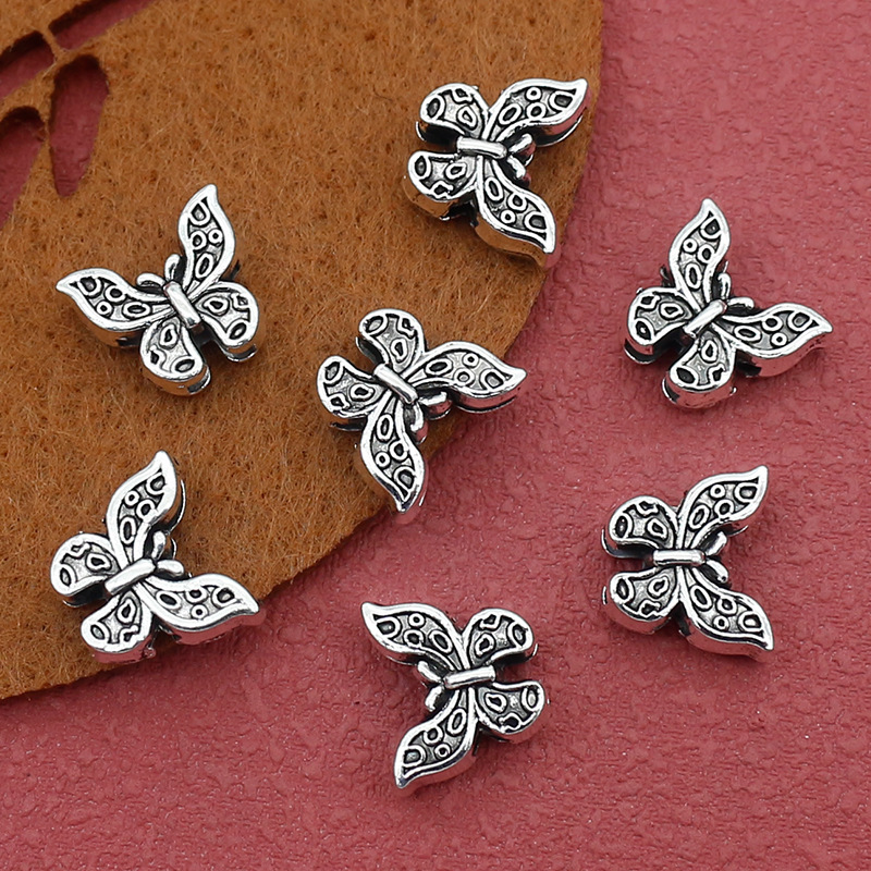 Perles plates en alliage de zinc , papillon, Plaqué de couleur d'argent, DIY, 12x10x4.5mm, Trou:Environ 1.5mm, Environ 100PC/sac, Vendu par sac