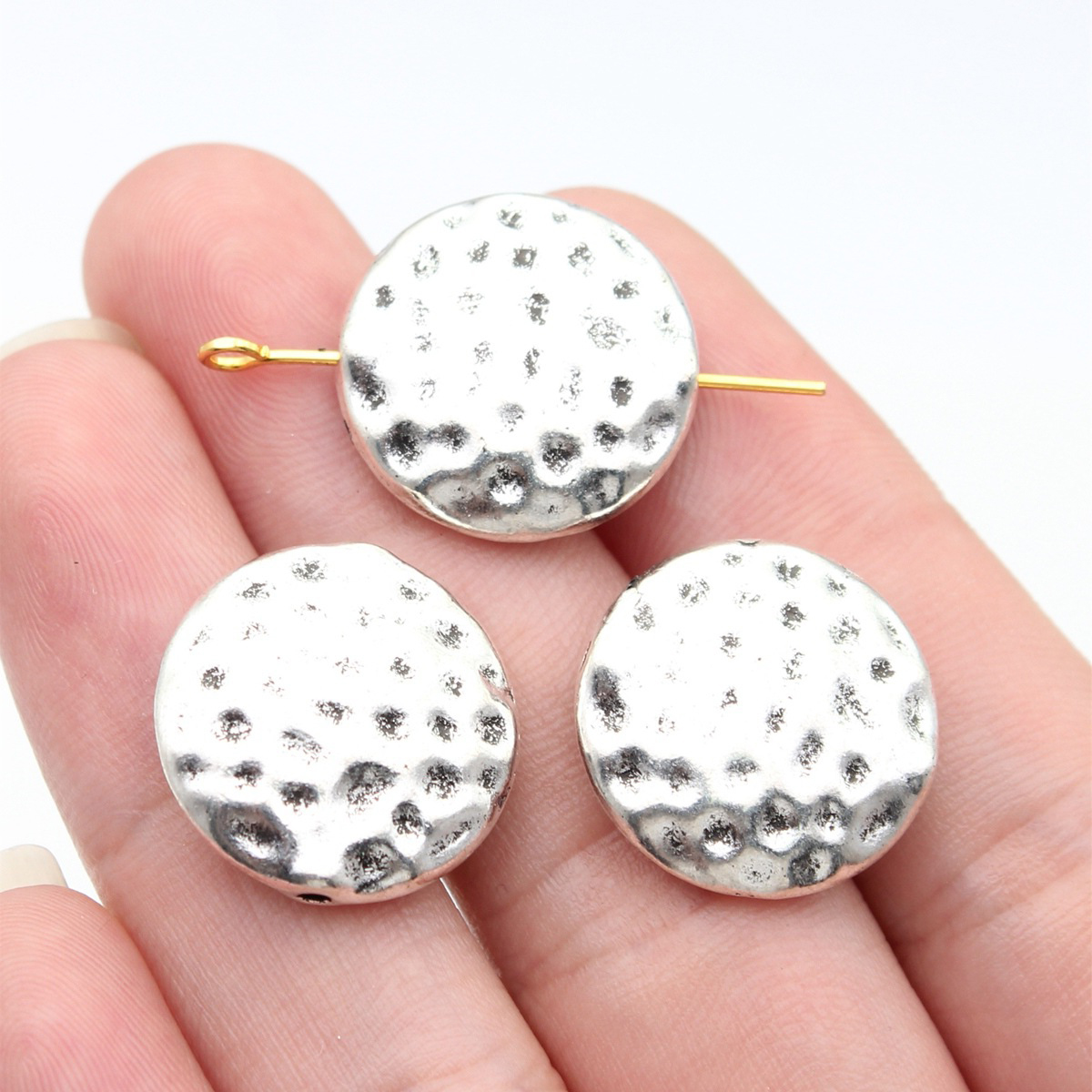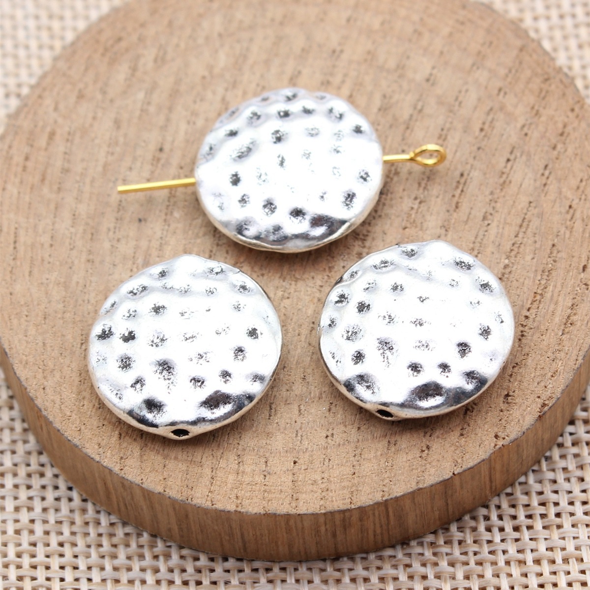 Perles plates en alliage de zinc , Rond, Placage, DIY, 19x19x6mm, 5PC/sac, Vendu par sac