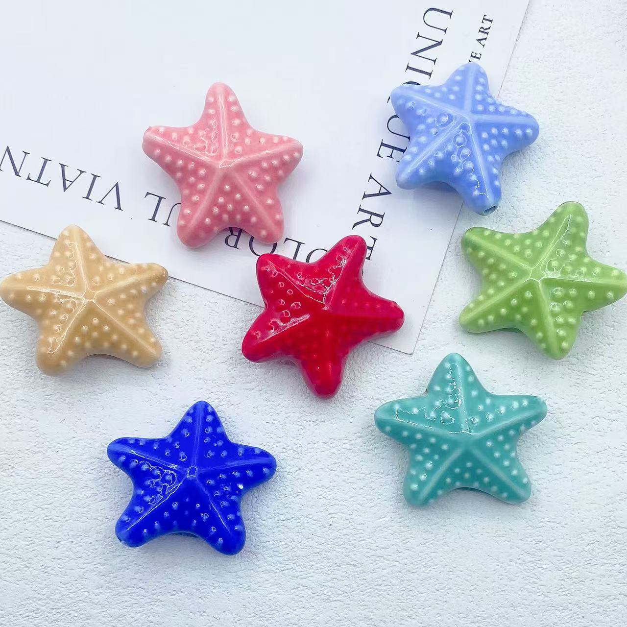 Perles porcelaine animaux, étoile de mer, DIY, plus de couleurs à choisir, 15x36mm, 100PC/sac, Vendu par sac