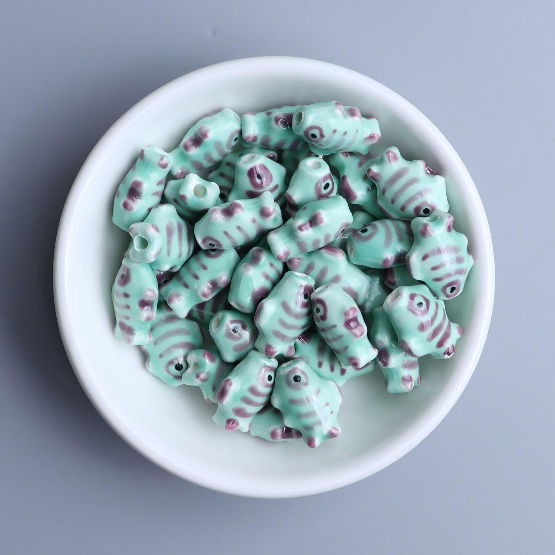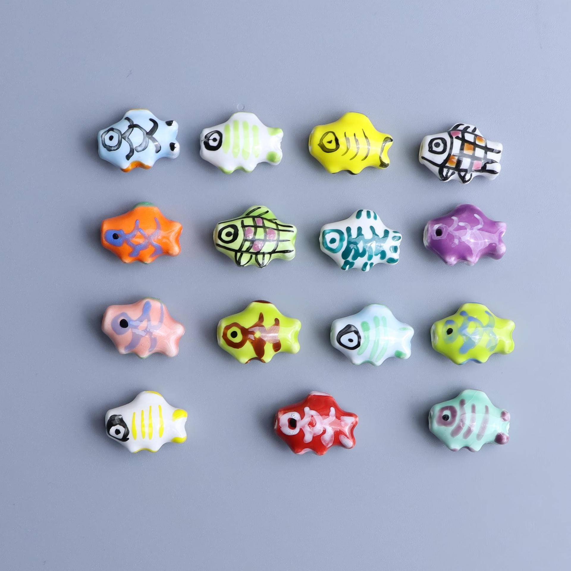 Perles porcelaine animaux, poisson, DIY, couleurs mélangées Vendu par PC
