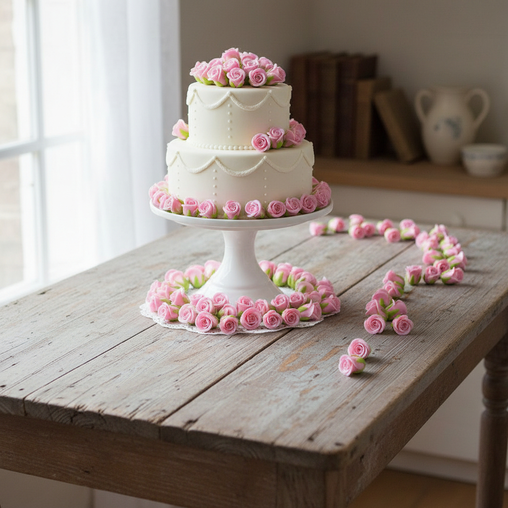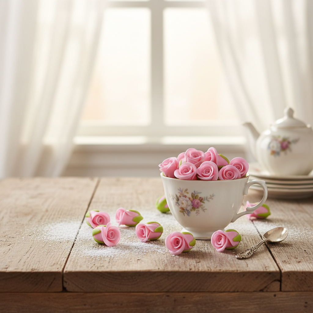 Perles porcelaine fleur, Placage coloré, disposé en couche, rose Environ 1mm, Vendu par PC