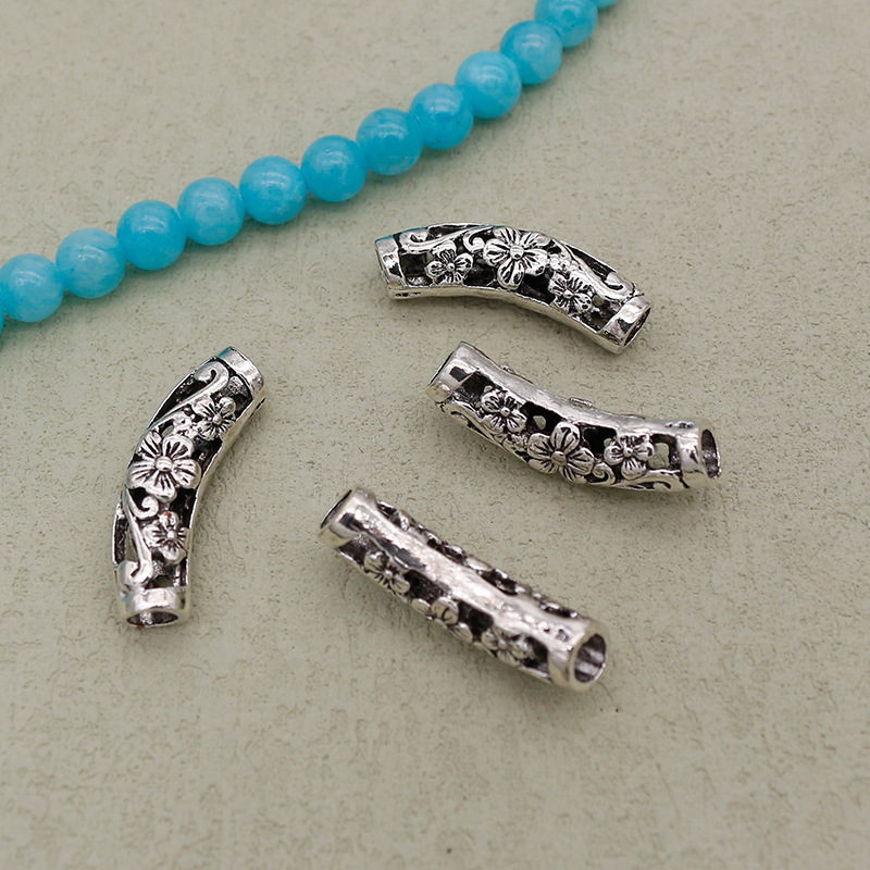 Perles tubes en alliage de zinc, Placage de couleur argentée, DIY, argent, 26.5mm, Trou:Environ 4mm, Vendu par PC