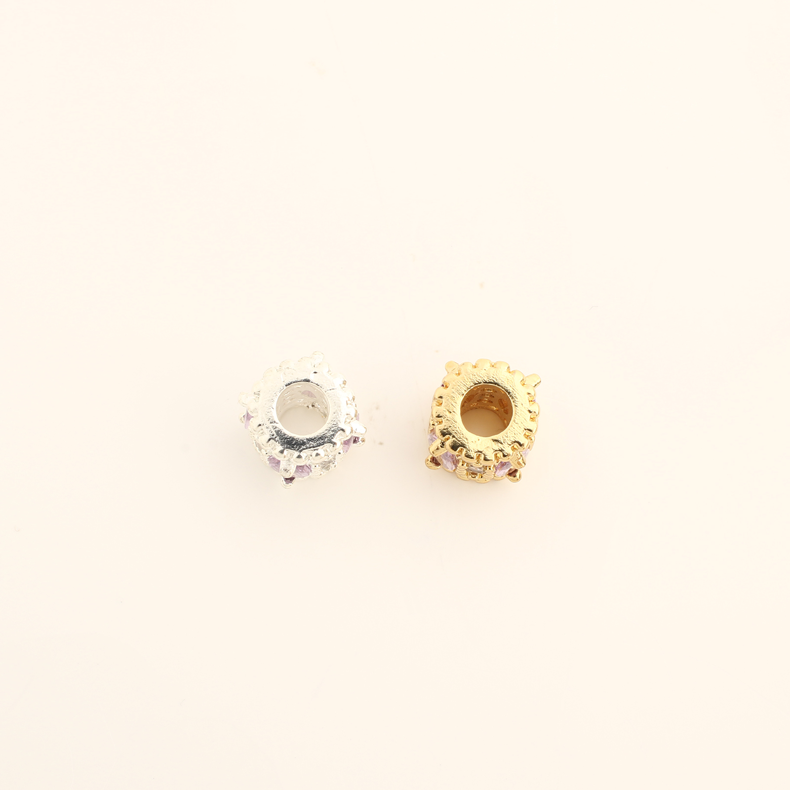 laiton Perles de curseur, avec verre, chanté plaqué or, pavé de micro zircon & creux, rose Environ 2mm, Vendu par PC