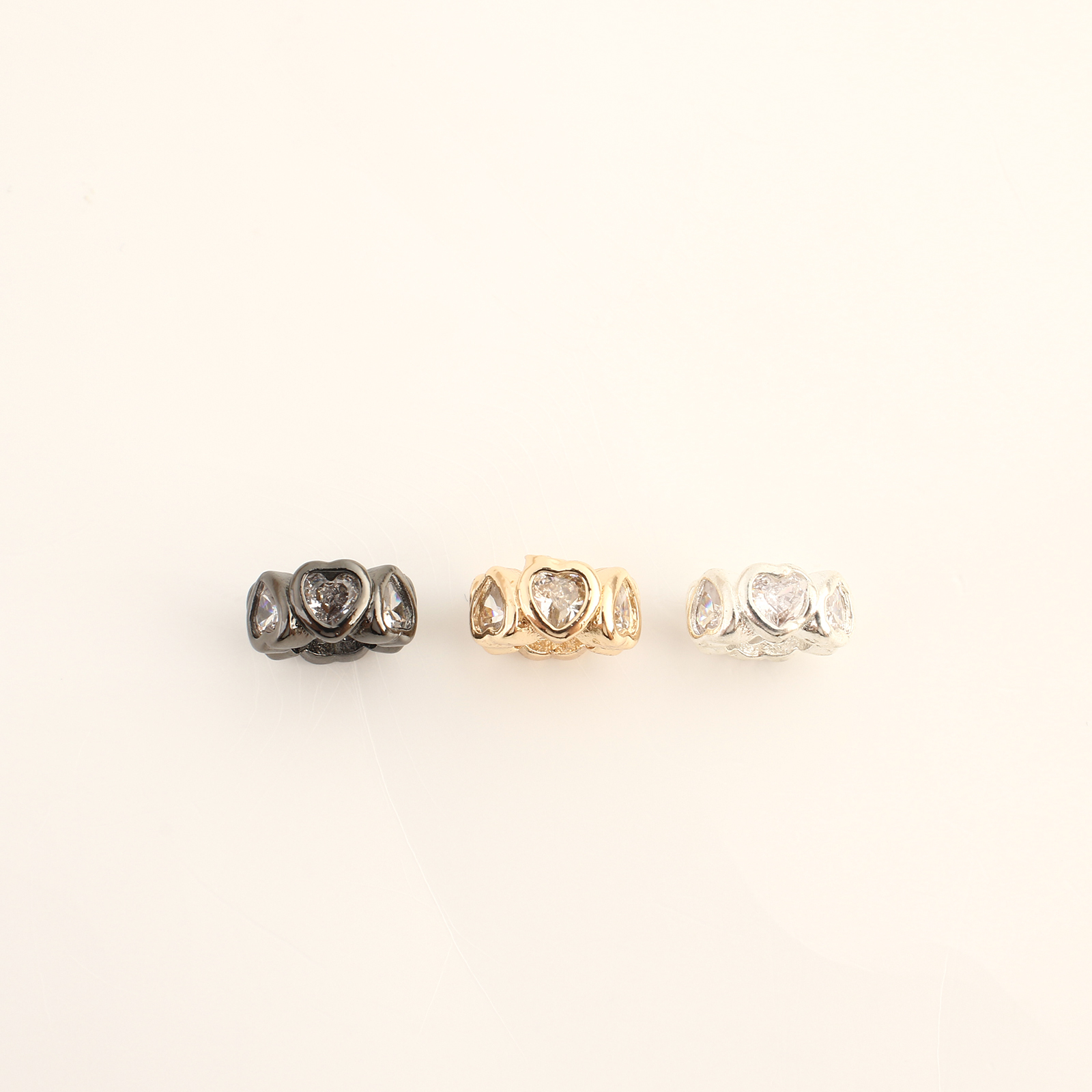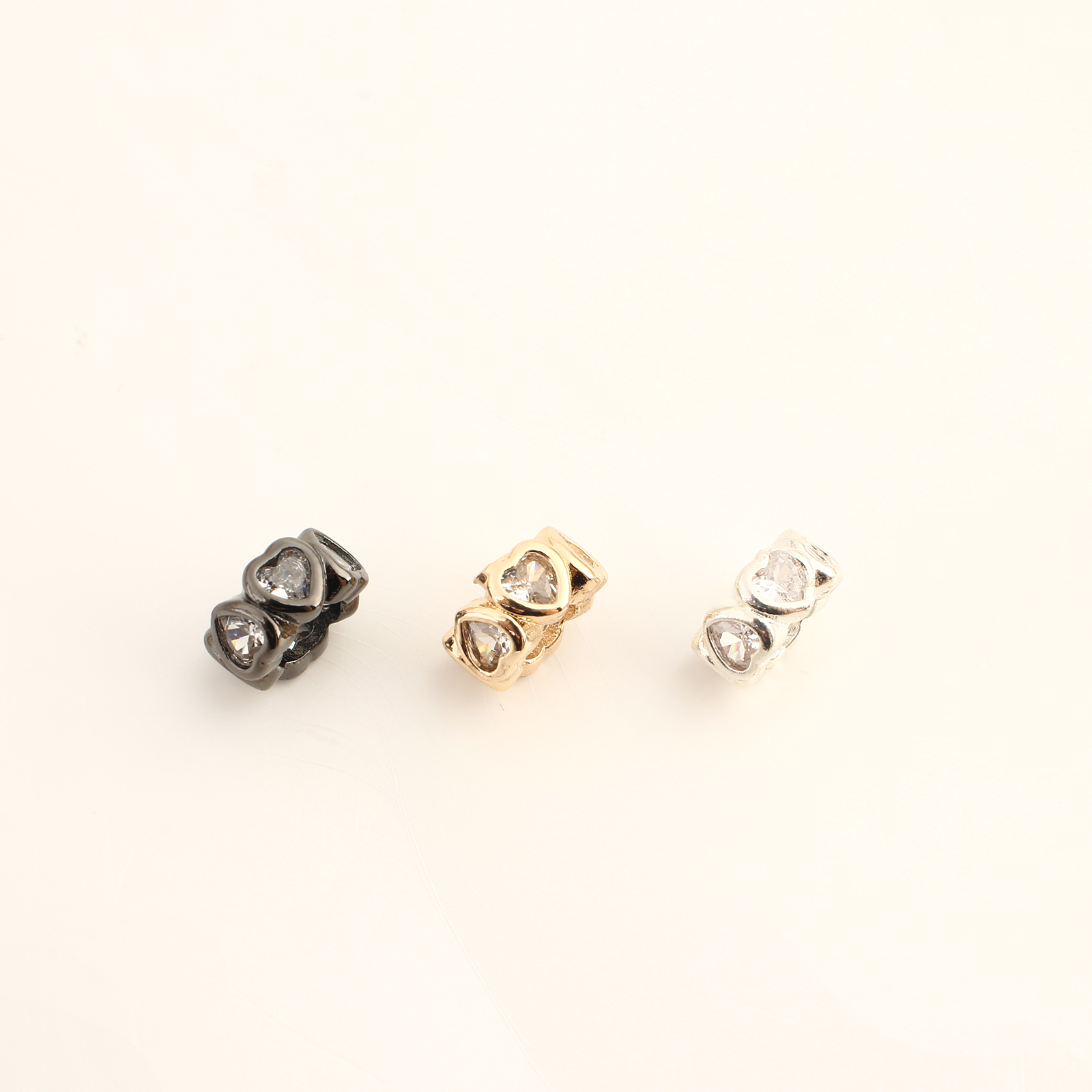 laiton Perles de curseur, avec verre, chanté plaqué or, pavé de micro zircon & creux, rose Environ 2mm, Vendu par PC