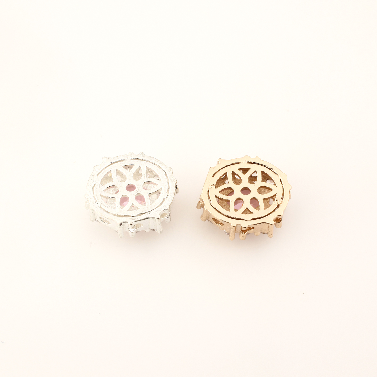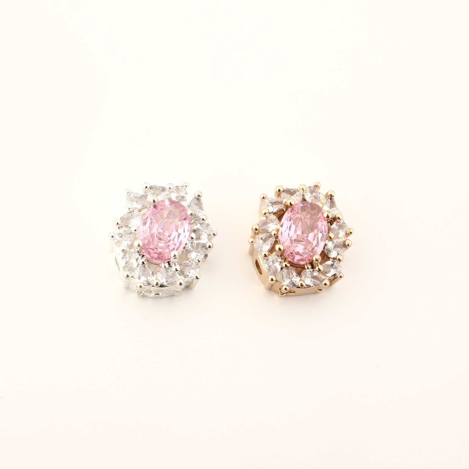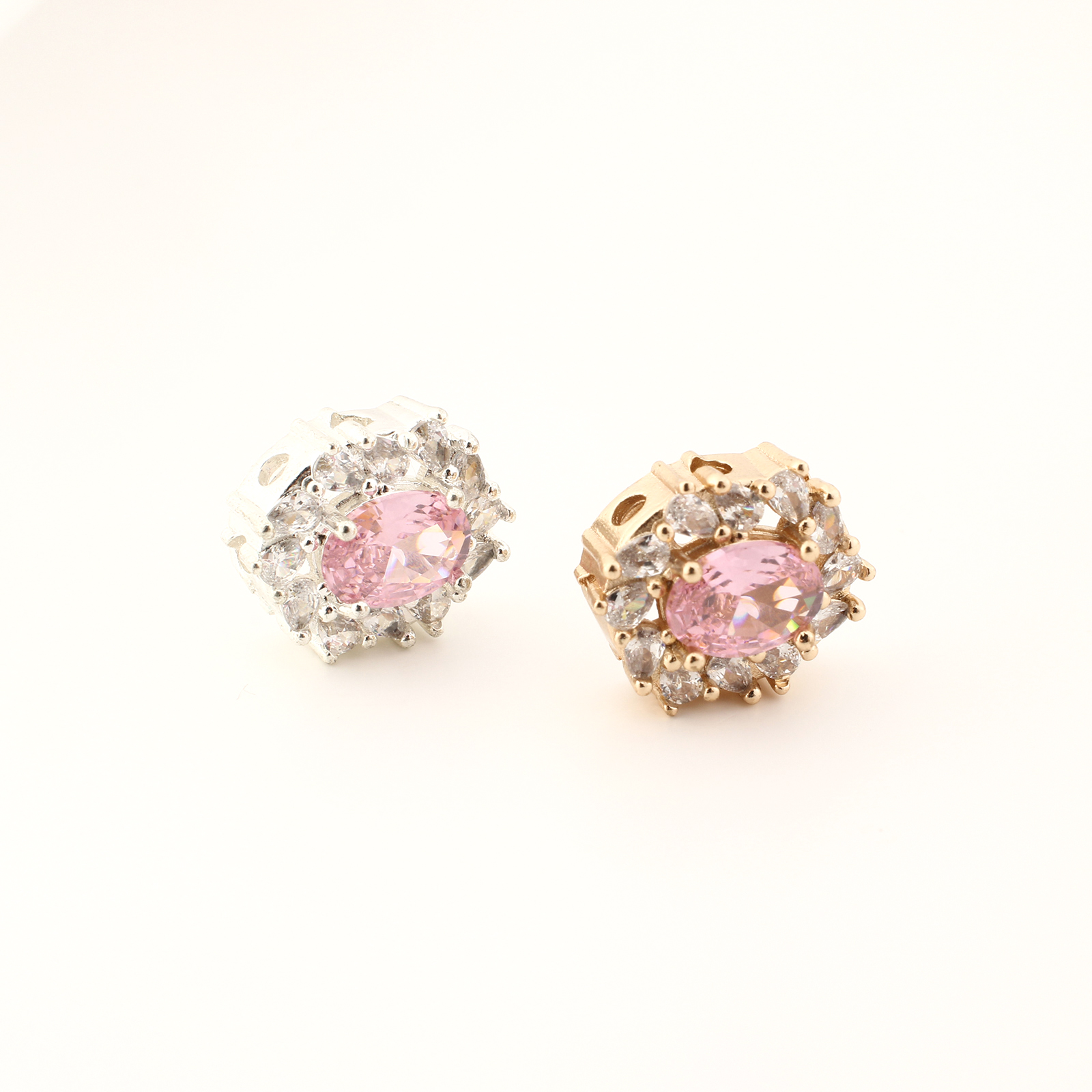 laiton Perles de curseur, avec verre, chanté plaqué or, pavé de micro zircon & creux, rose Environ 2mm, Vendu par PC