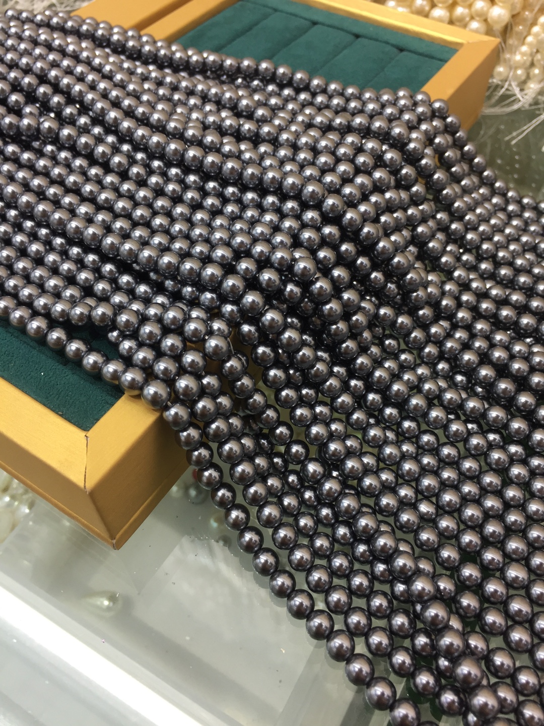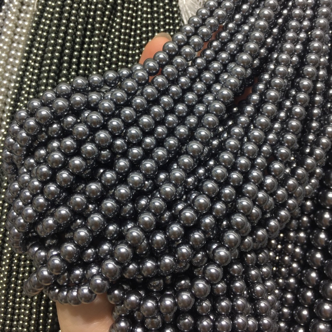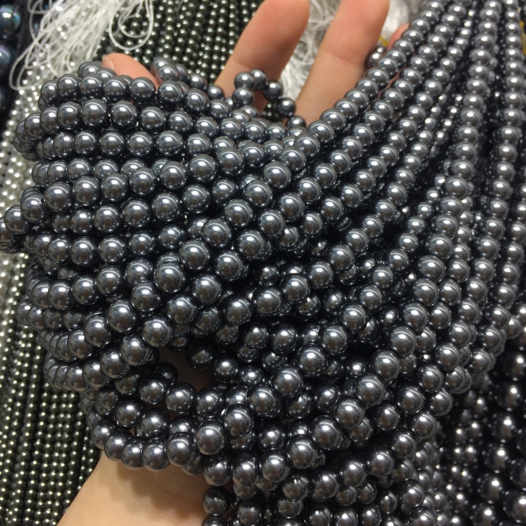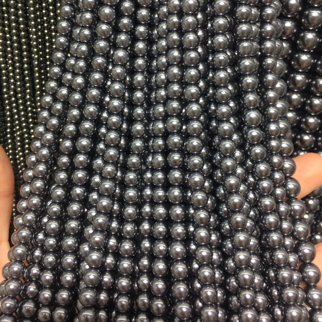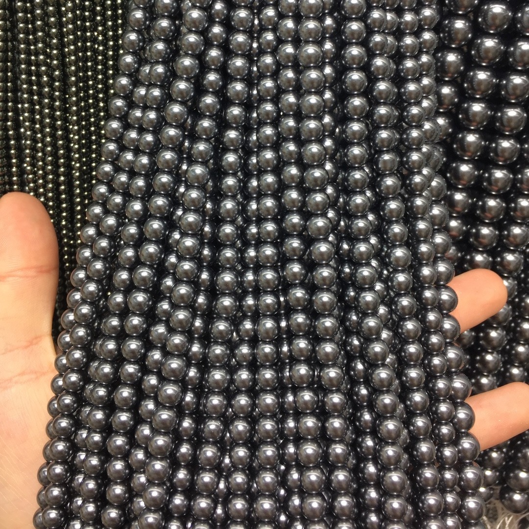 Peties perles de la mer du sud, Shell Pearl, Rond, DIY, noire, 8mm, Longueur:40 cm, Vendu par brin