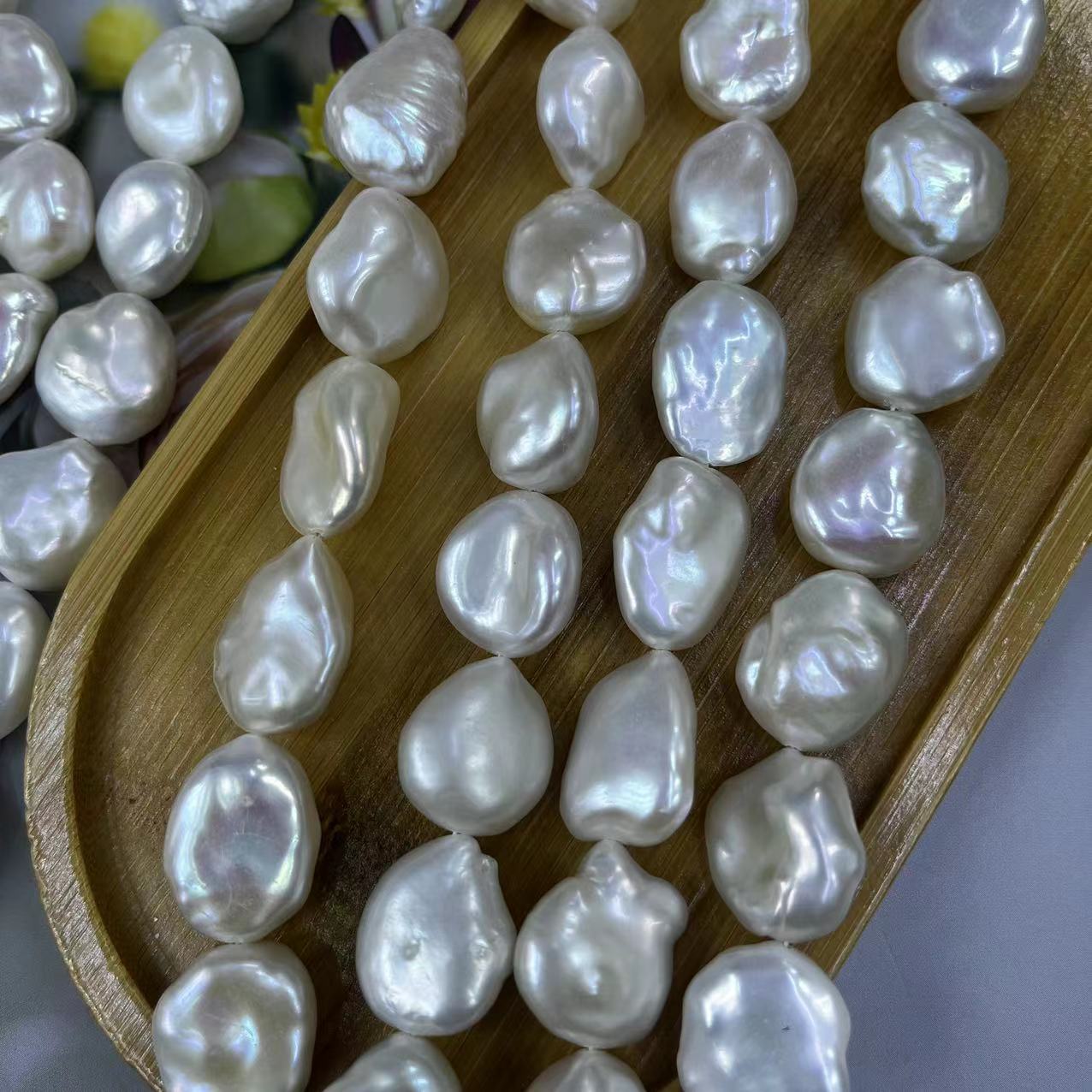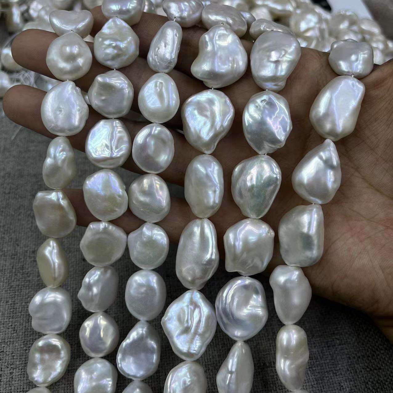 Petites perles cultivées en eau douce, perle d'eau douce cultivée, Baroque, DIY, blanc, about:18-20mm, Longueur:Environ 40 cm, Environ 21PC/brin, Vendu par brin
