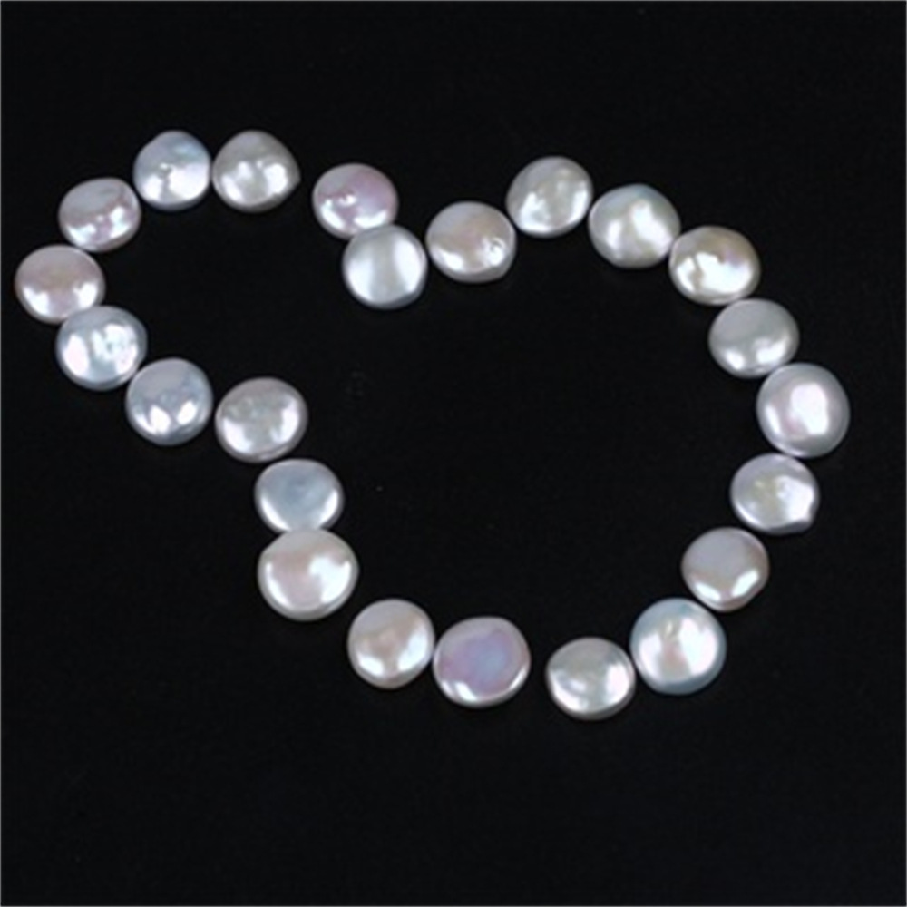 Pièce de culture des perles d'eau douce, perle d'eau douce cultivée, pièce de monnaie, naturel, blanc, 12-13mm Environ 0.8mm Environ 16 pouce, Vendu par brin