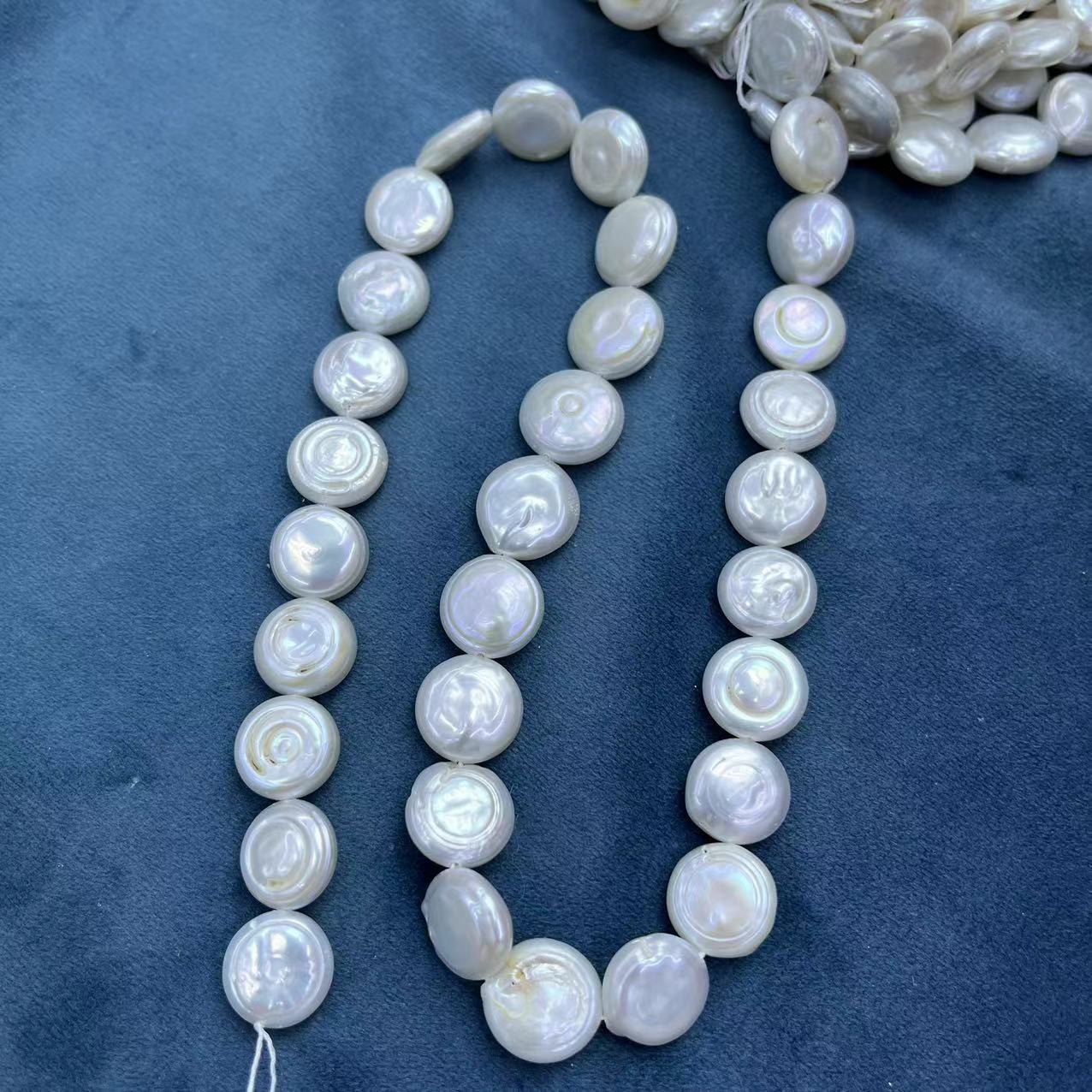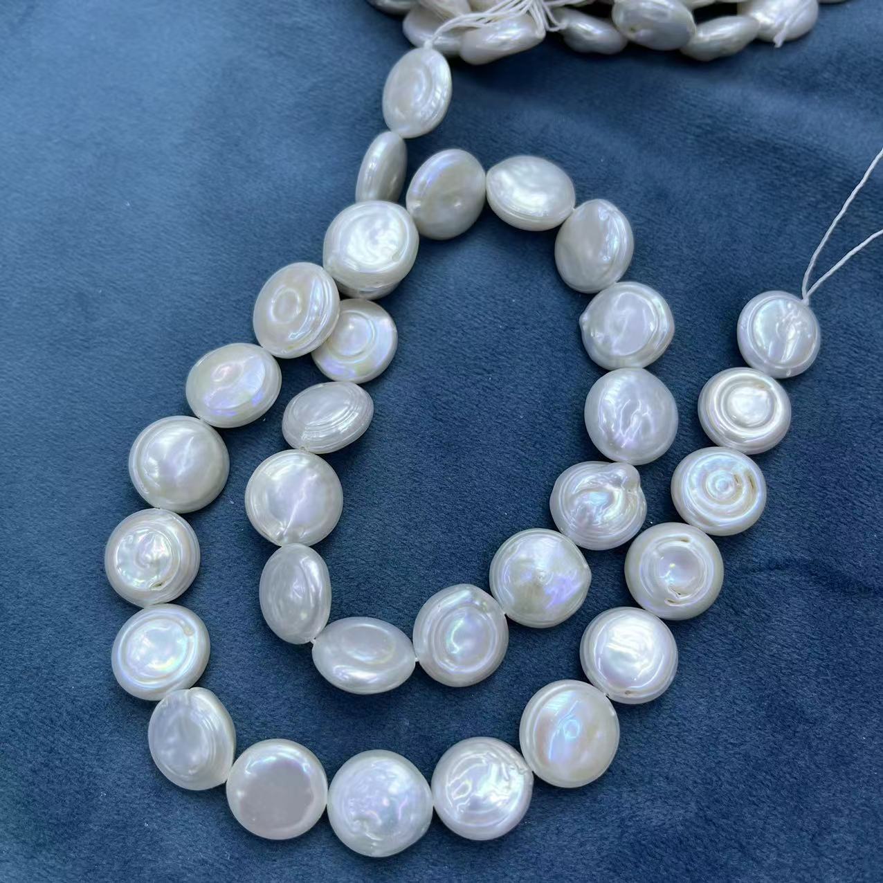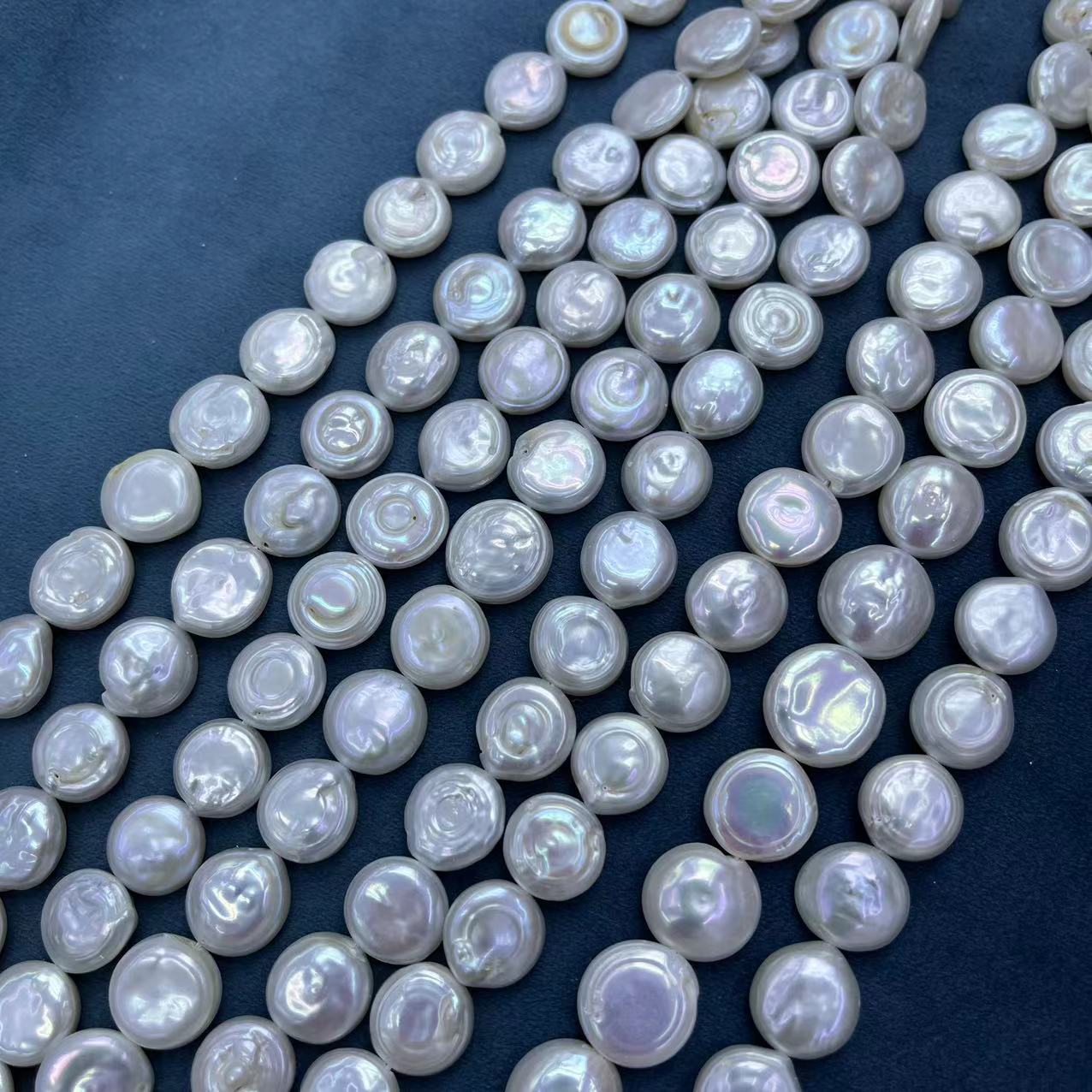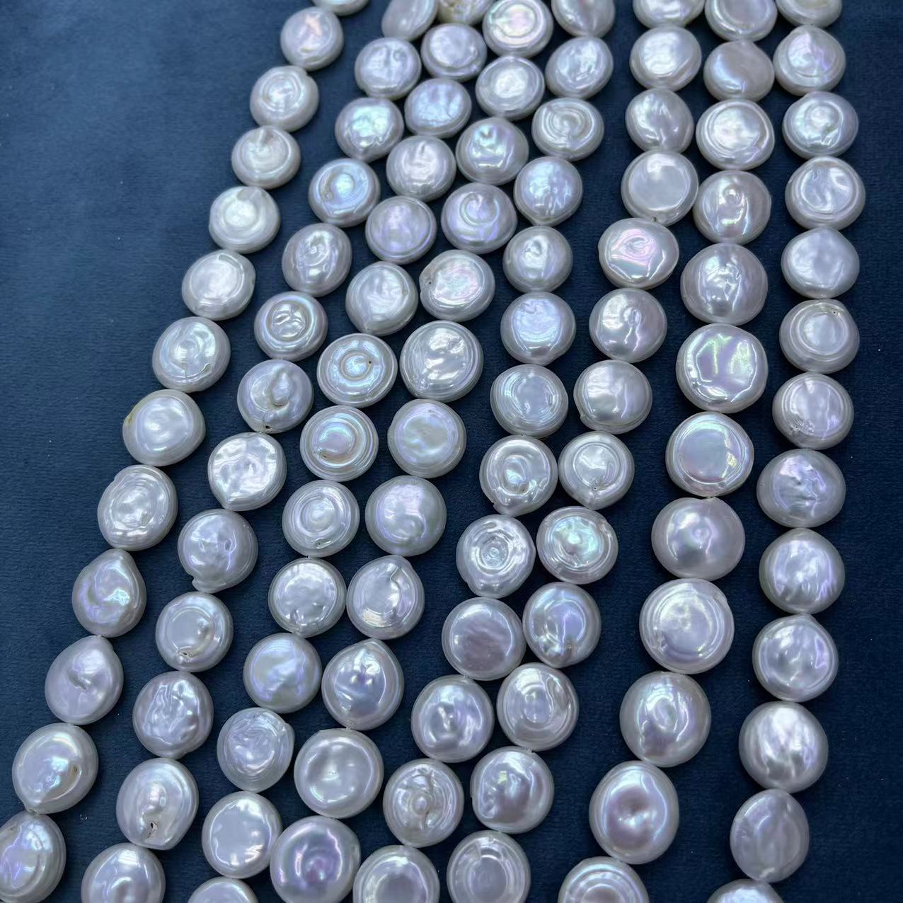 Pièce de culture des perles d'eau douce, perle d'eau douce cultivée, pièce de monnaie, DIY, blanc, about:12-13mm, Environ 29PC/brin, Vendu par brin