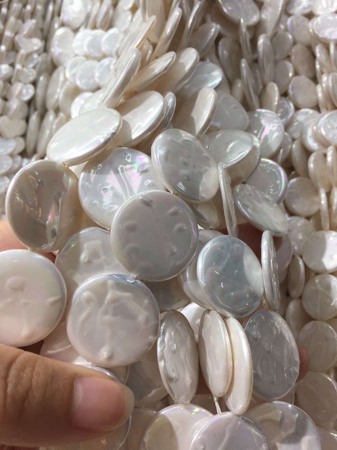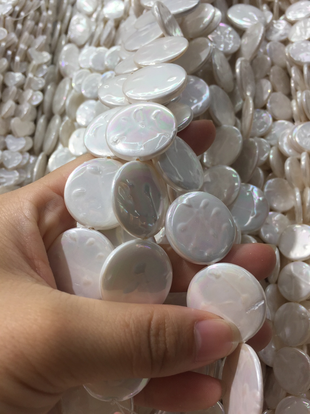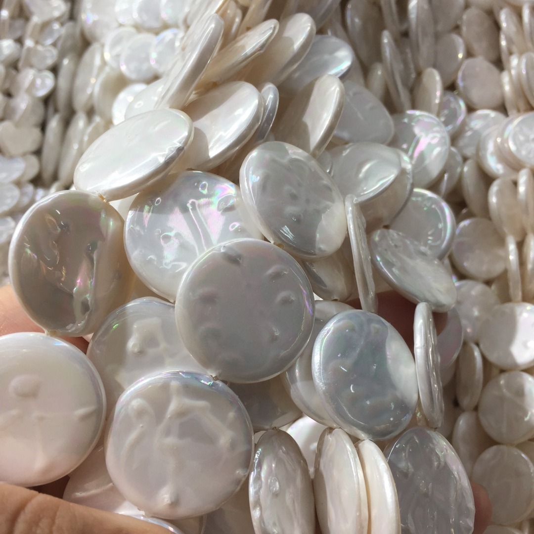 Pièce de culture des perles d'eau douce, perle d'eau douce cultivée, pièce de monnaie, naturel, blanc, 16-24mm Environ 0.8mm .7 pouce, Vendu par brin