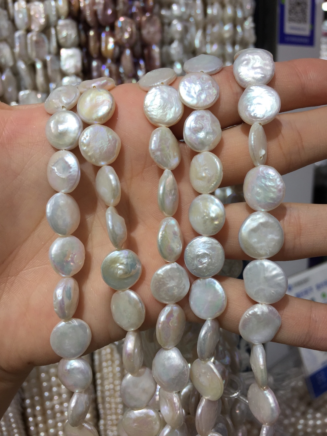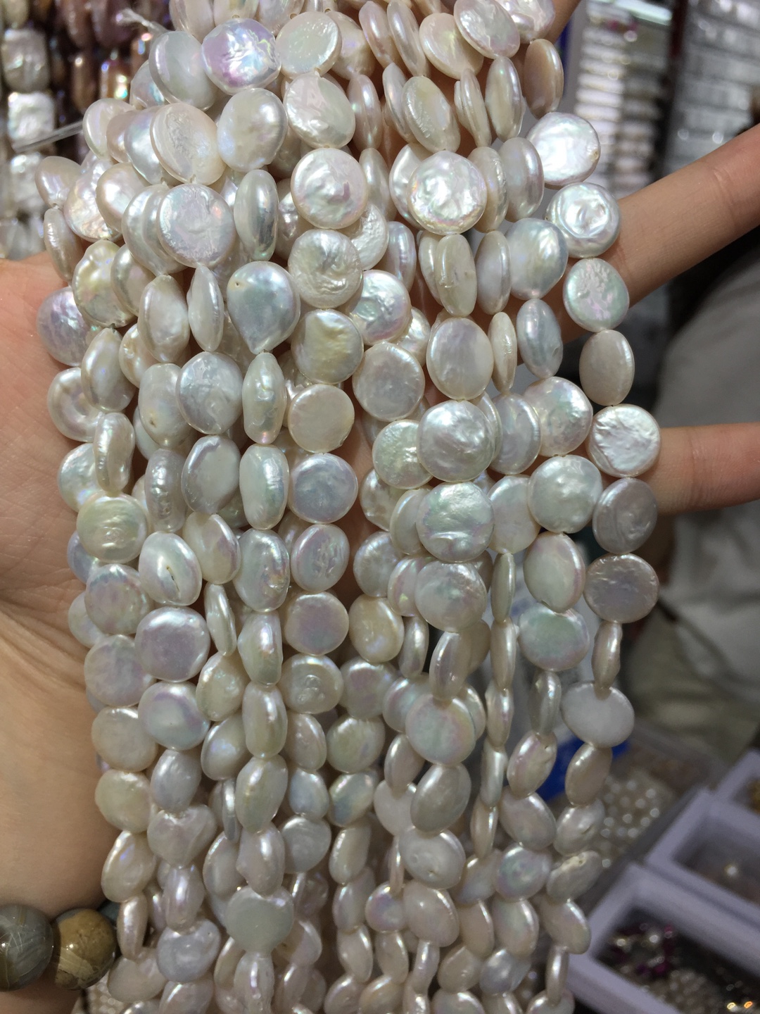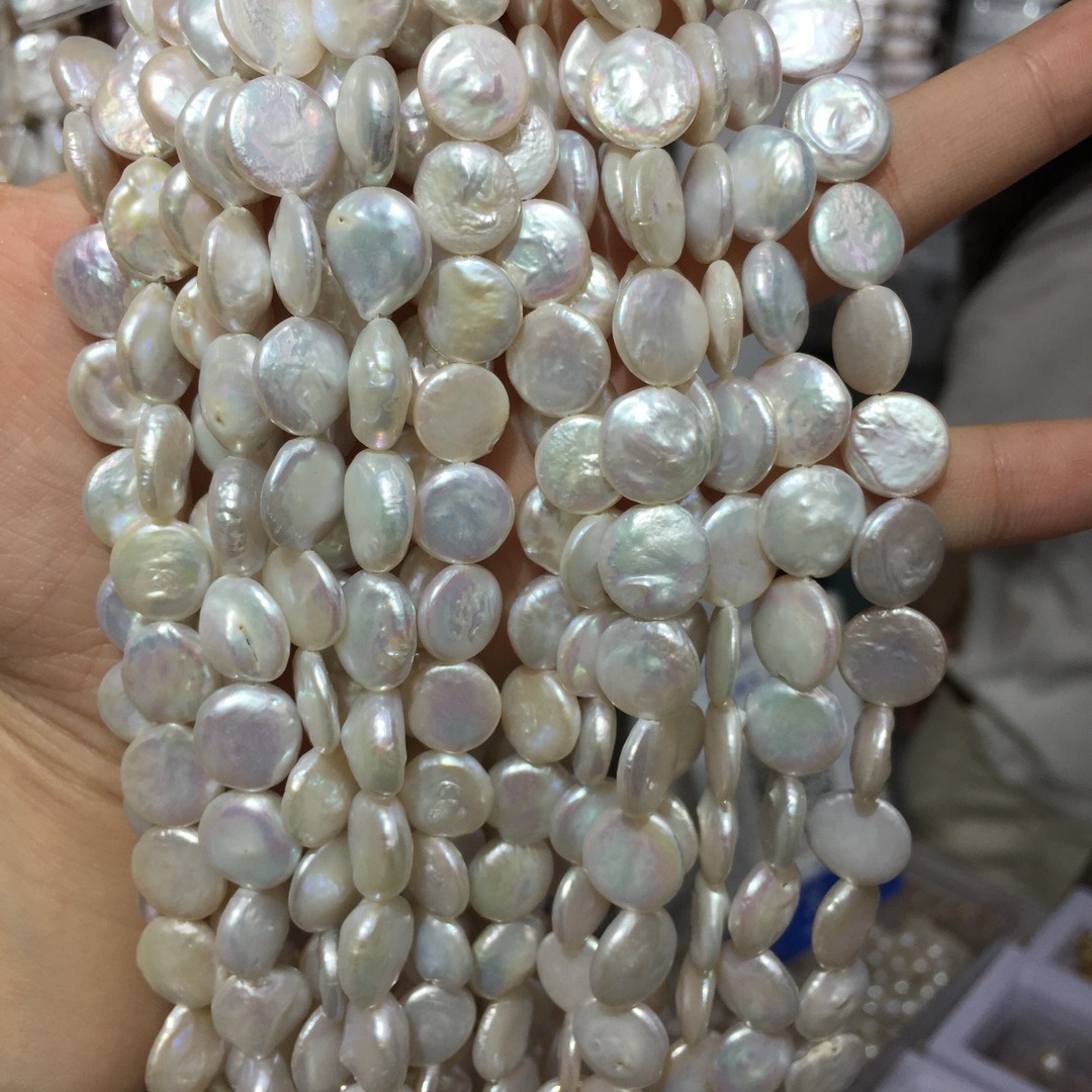 Pièce de culture des perles d'eau douce, perle d'eau douce cultivée, pièce de monnaie, naturel, blanc, grade AAA, 17-18mm Environ 0.8mm Environ 15.3 pouce, Vendu par brin