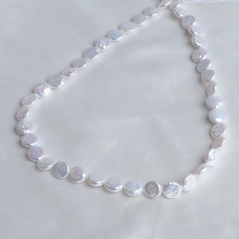 Pièce de culture des perles d'eau douce, perle d'eau douce cultivée, pièce de monnaie, naturel, blanc, 12-13mm Environ 0.8mm Environ 16 pouce, Vendu par brin