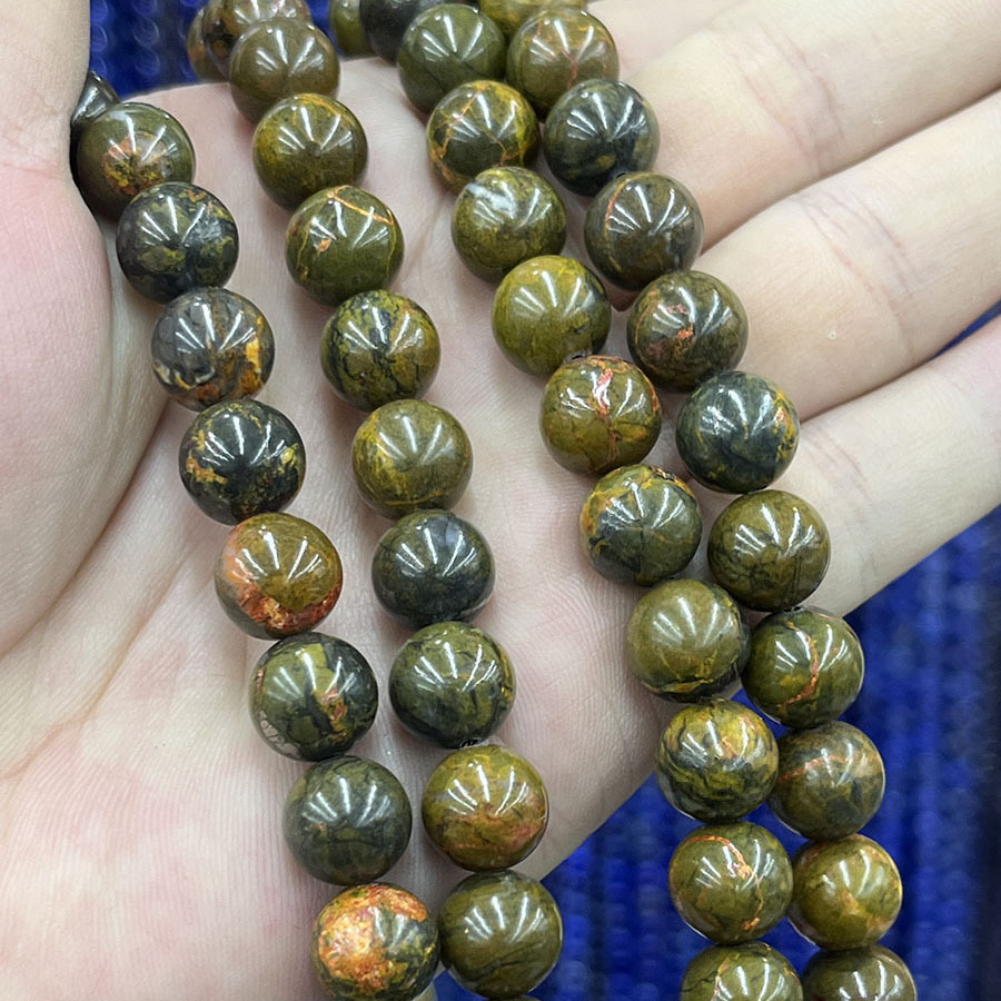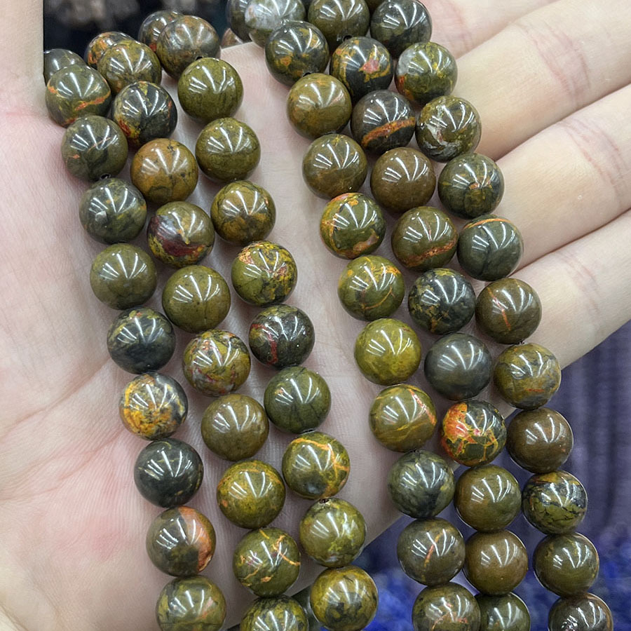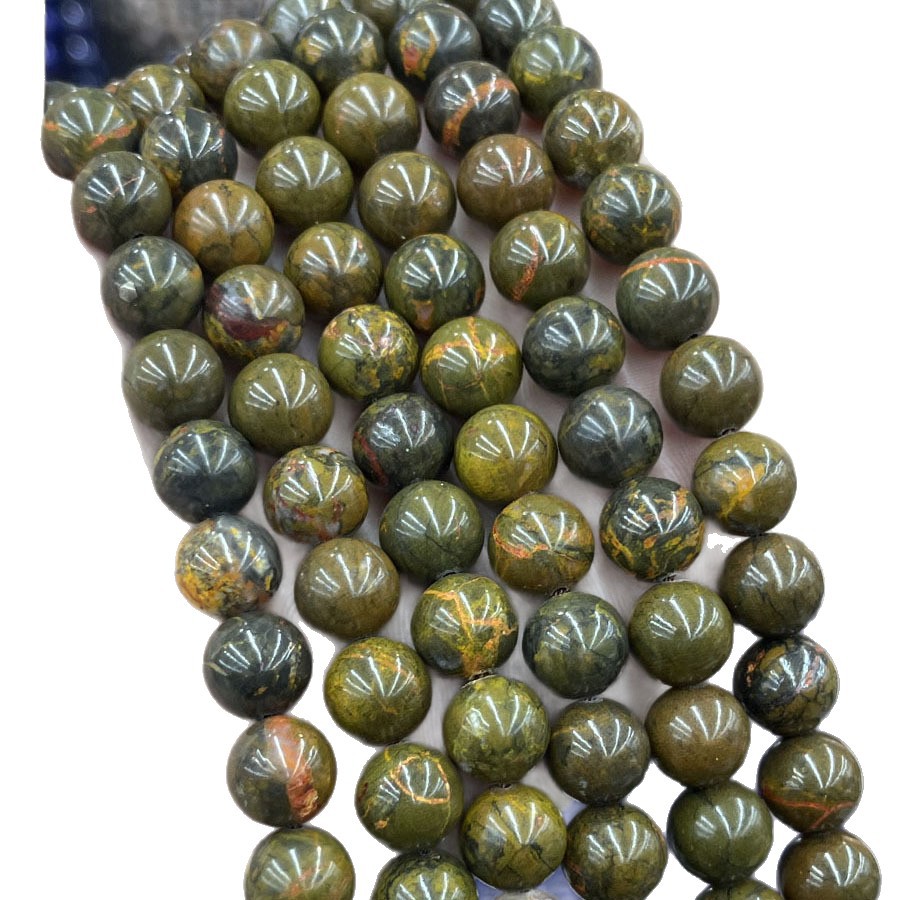 Perles de pierre gemme unique, Bloodstone africain, Rond, poli, gris clair Vendu par brin