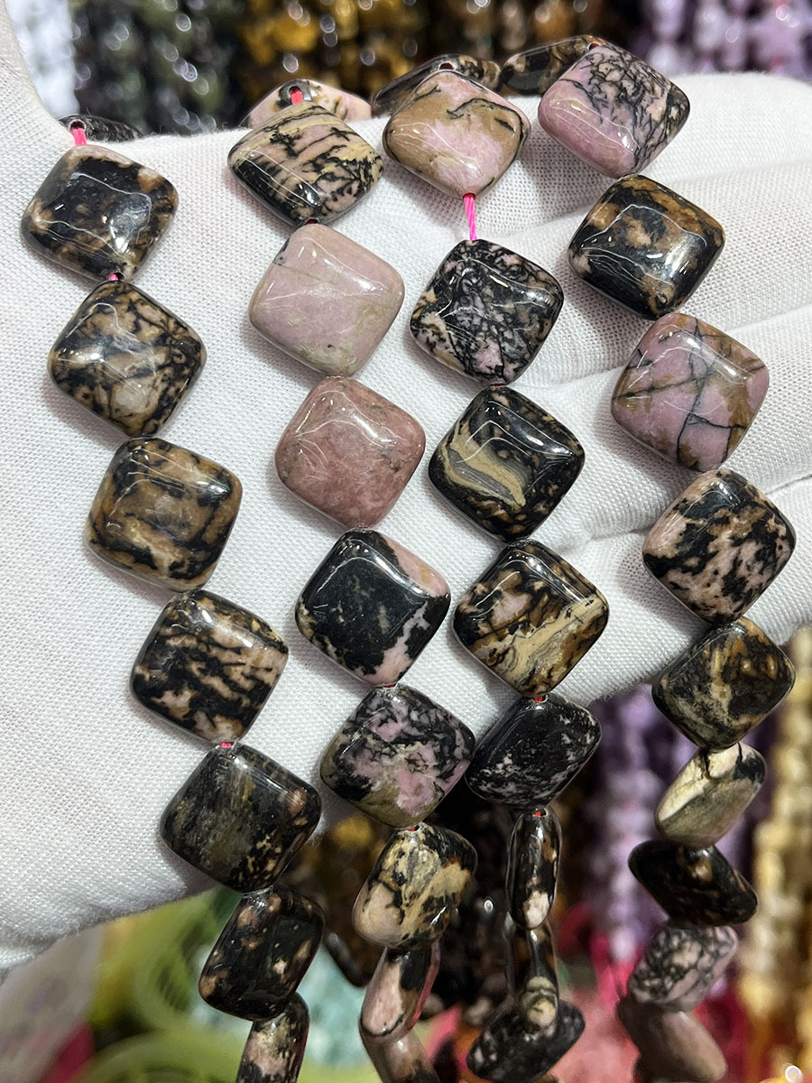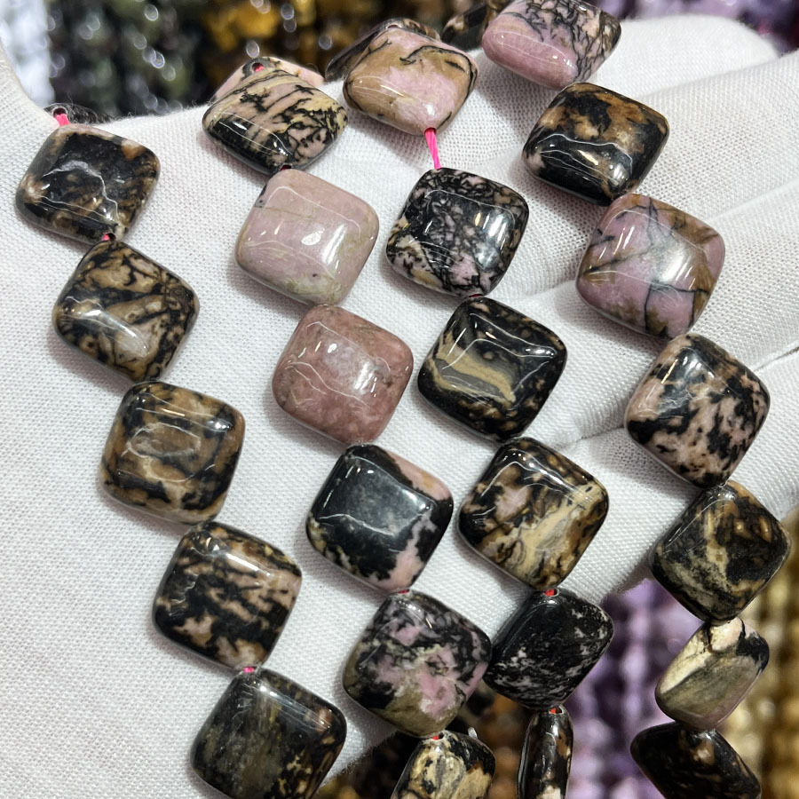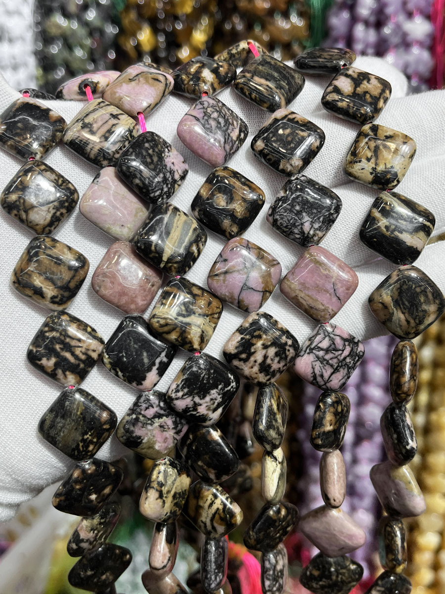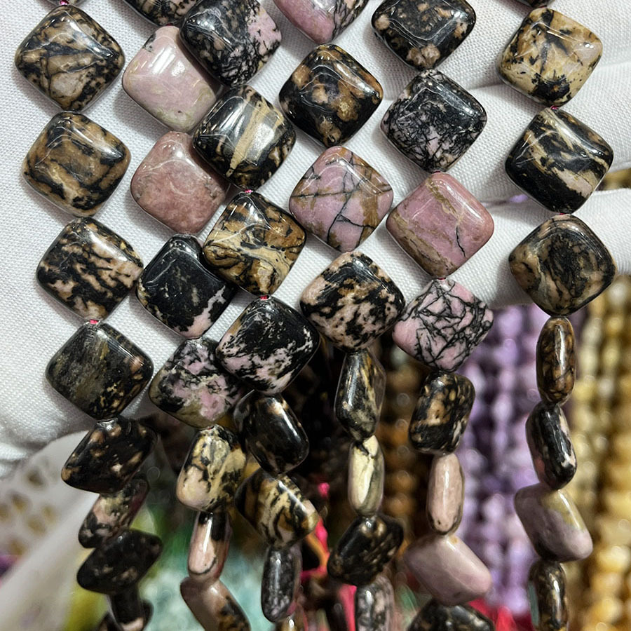 Pierre de rhodochrosite rayée noire goutte, Losange, DIY, couleurs mélangées, 15mm, Longueur:38 cm, Vendu par brin