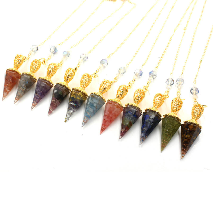 Pierre naturelle Pendule, avec laiton, différents matériaux pour le choix, plus de couleurs à choisir, 43x18x18mm, Vendu par PC