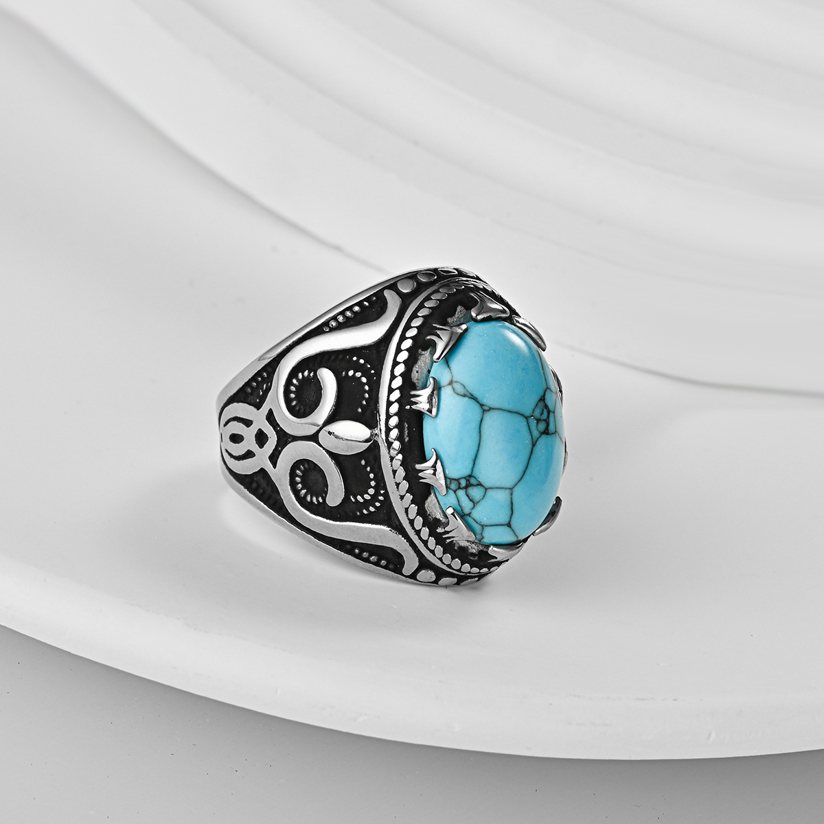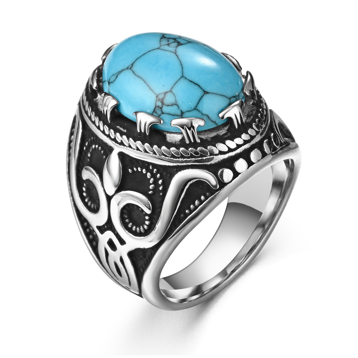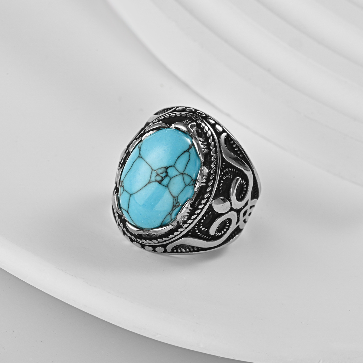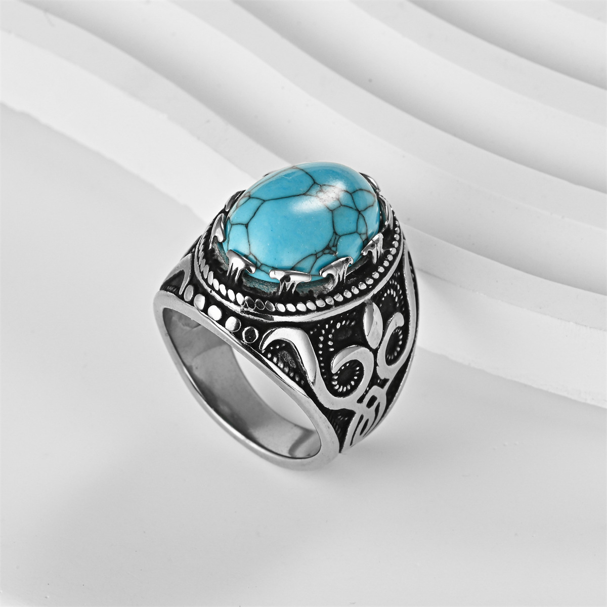 Pierre précieuse bague en acier inoxydable, Acier inoxydable 316, avec turquoise, Placage de couleur argentée, normes différentes pour le choix & pour homme, plus de couleurs à choisir, Vendu par PC