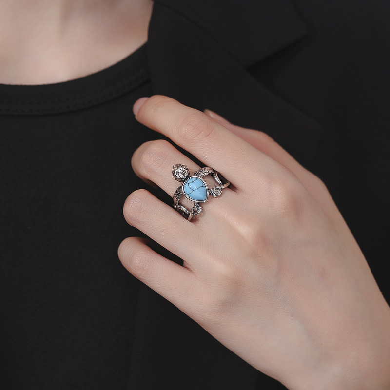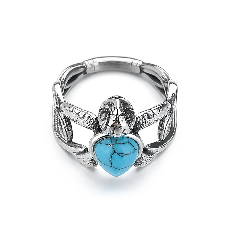 Pierre précieuse bague en acier inoxydable, Acier inoxydable 304, avec turquoise, Finition antique, normes différentes pour le choix & pour homme & creux, couleur originale, Vendu par PC
