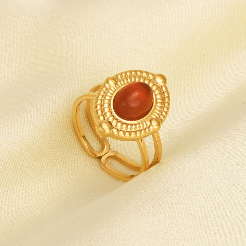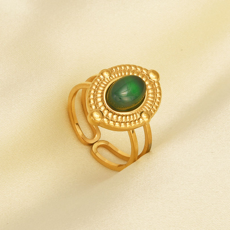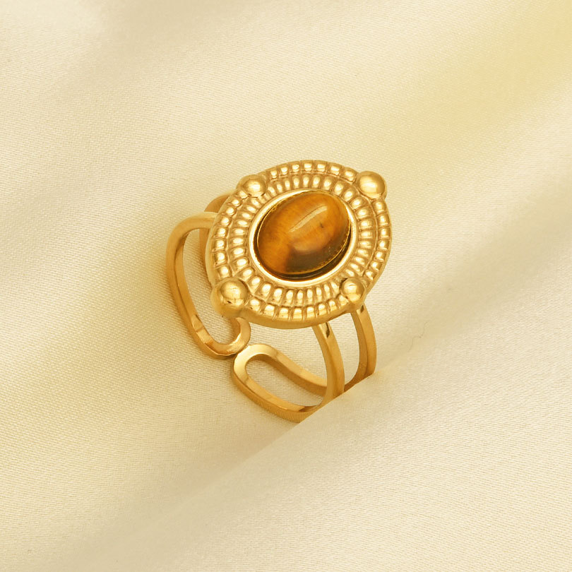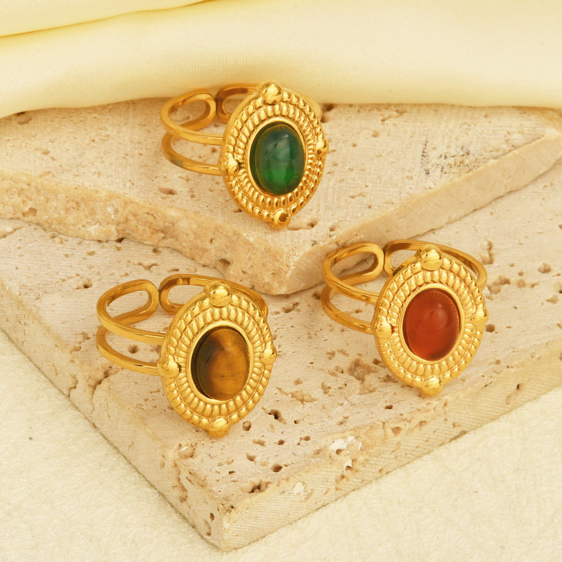 Pierre précieuse bague en acier inoxydable, Acier inoxydable 304, avec pierre gemme, Placage de couleur d'or, pour femme, plus de couleurs à choisir, Vendu par PC