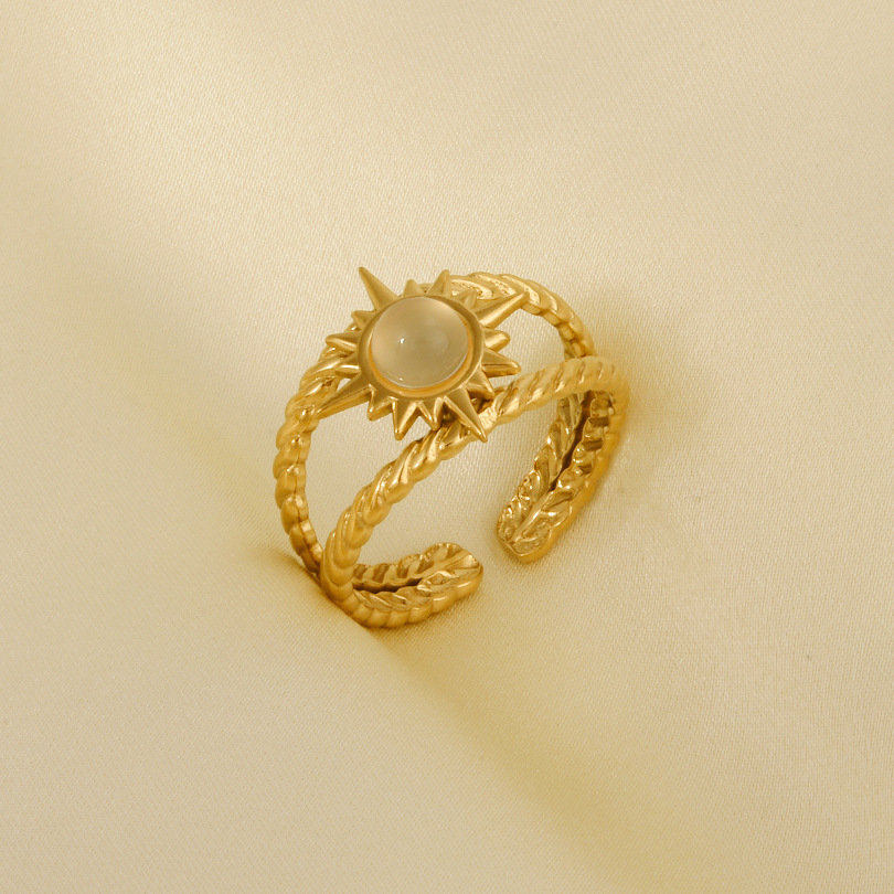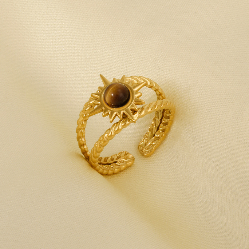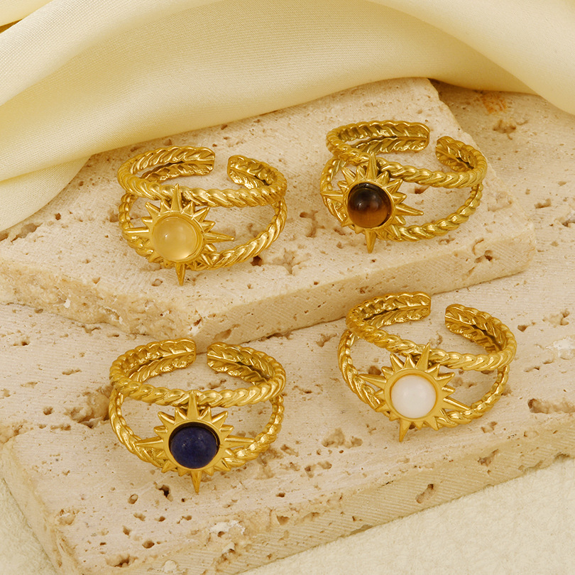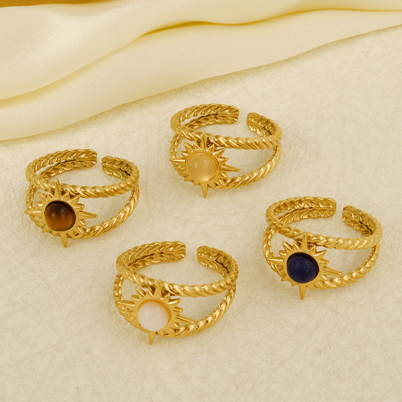 Pierre précieuse bague en acier inoxydable, Acier inoxydable 304, avec pierre gemme, Placage ionique sous vide, Réglable & bijoux de mode & pour femme, plus de couleurs à choisir, Vendu par PC