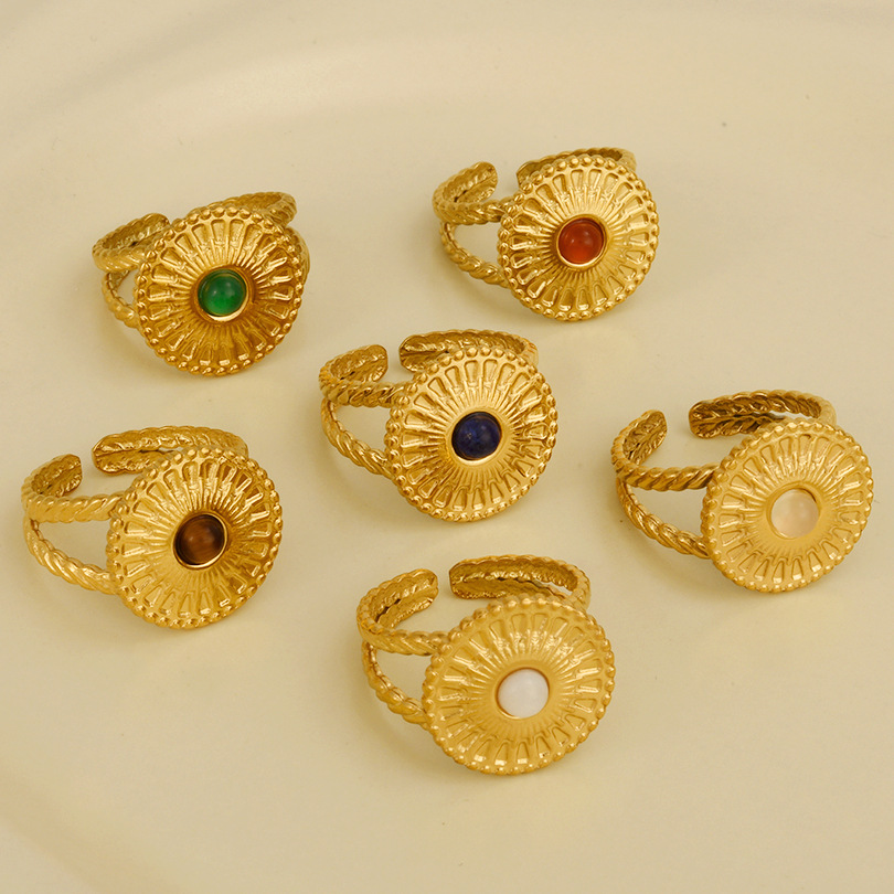 Pierre précieuse bague en acier inoxydable, Acier inoxydable 304, avec pierre gemme, Placage ionique sous vide, Réglable & bijoux de mode & pour femme, plus de couleurs à choisir, Vendu par PC