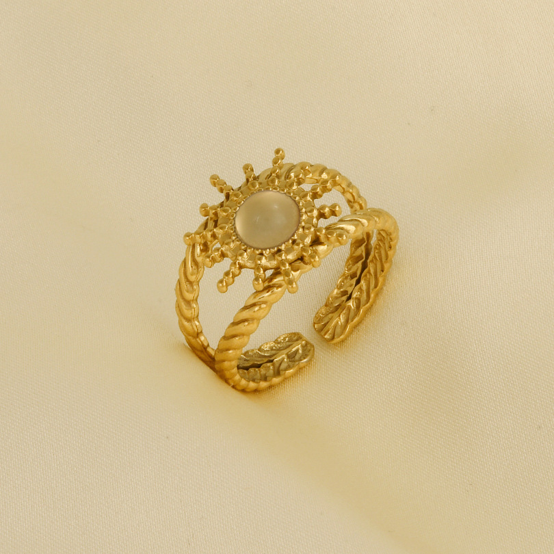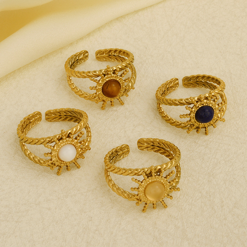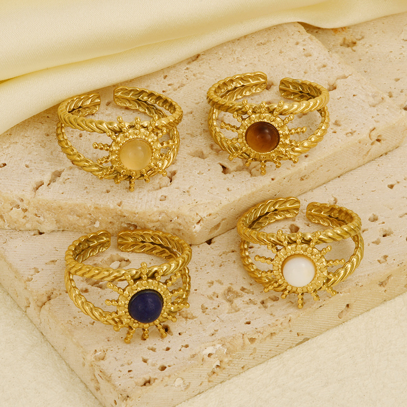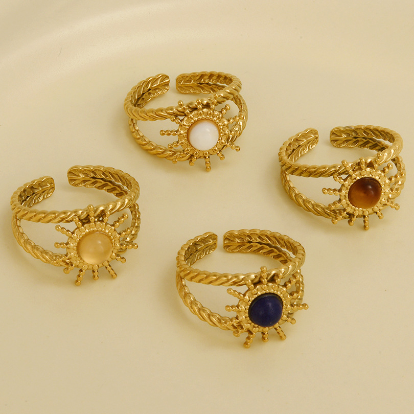 Pierre précieuse bague en acier inoxydable, Acier inoxydable 304, avec pierre gemme, Placage ionique sous vide, Réglable & bijoux de mode & pour femme, plus de couleurs à choisir, Vendu par PC