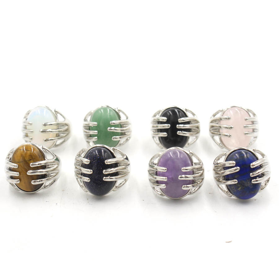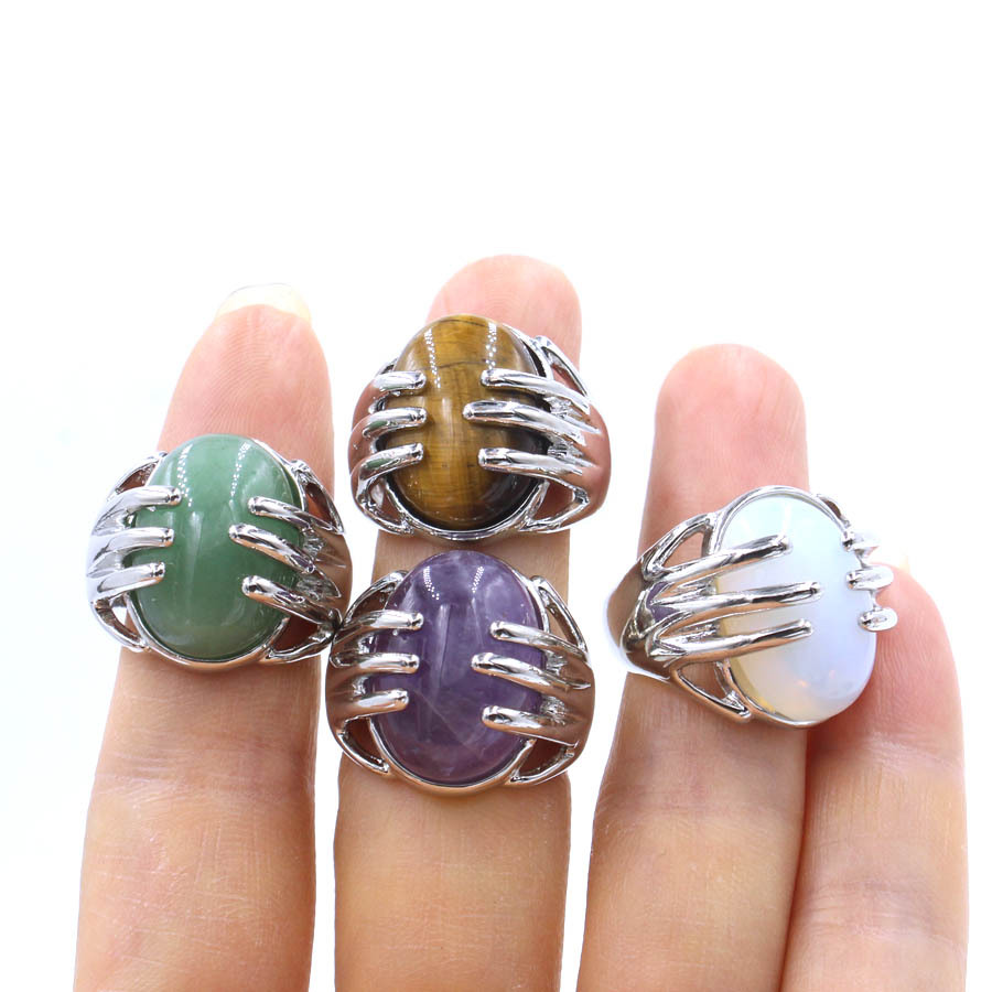 Pierre précieuse bague en acier inoxydable, Acier inoxydable 304, avec Pierre naturelle, Placage de couleur argentée, différents matériaux pour le choix & unisexe, plus de couleurs à choisir, 20x22mm, Vendu par PC