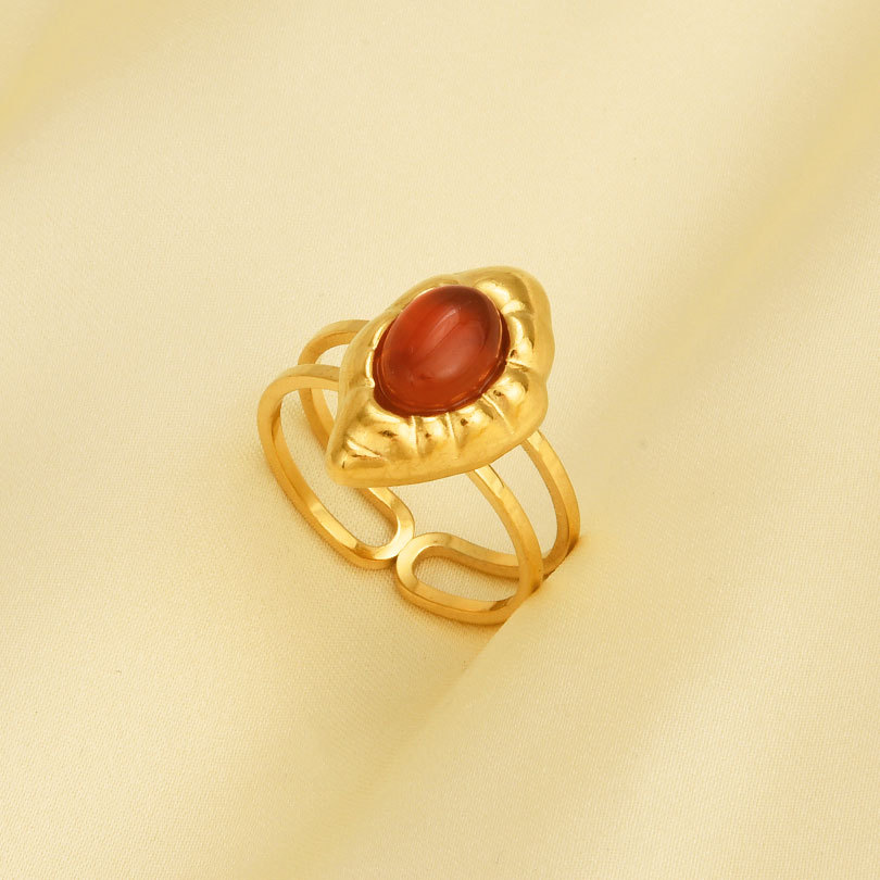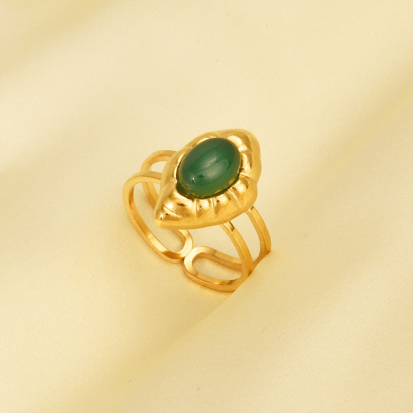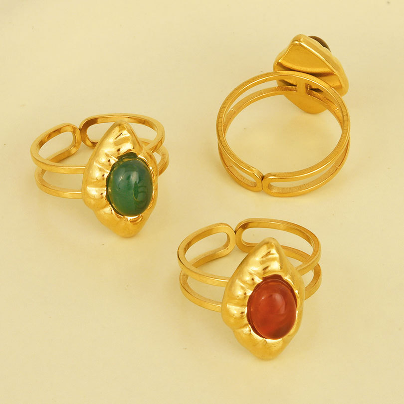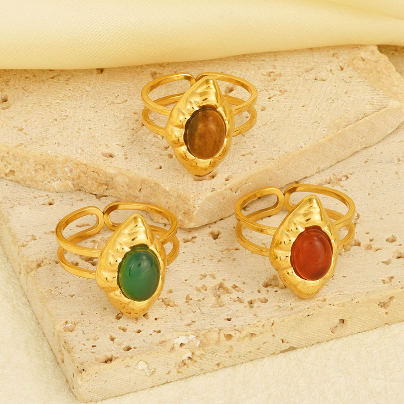 Pierre précieuse bague en acier inoxydable, Acier inoxydable 304, avec pierre gemme, Placage de couleur d'or, différents matériaux pour le choix & pour femme, plus de couleurs à choisir, Vendu par PC