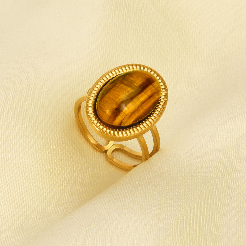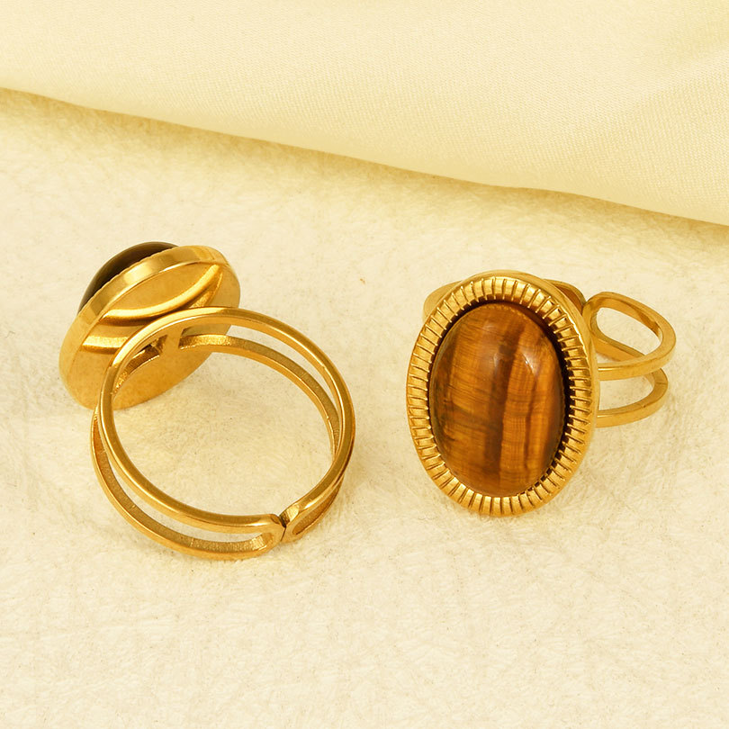 Pierre précieuse bague en acier inoxydable, Acier inoxydable 304, avec pierre gemme, Placage de couleur d'or, pour femme, Vendu par PC