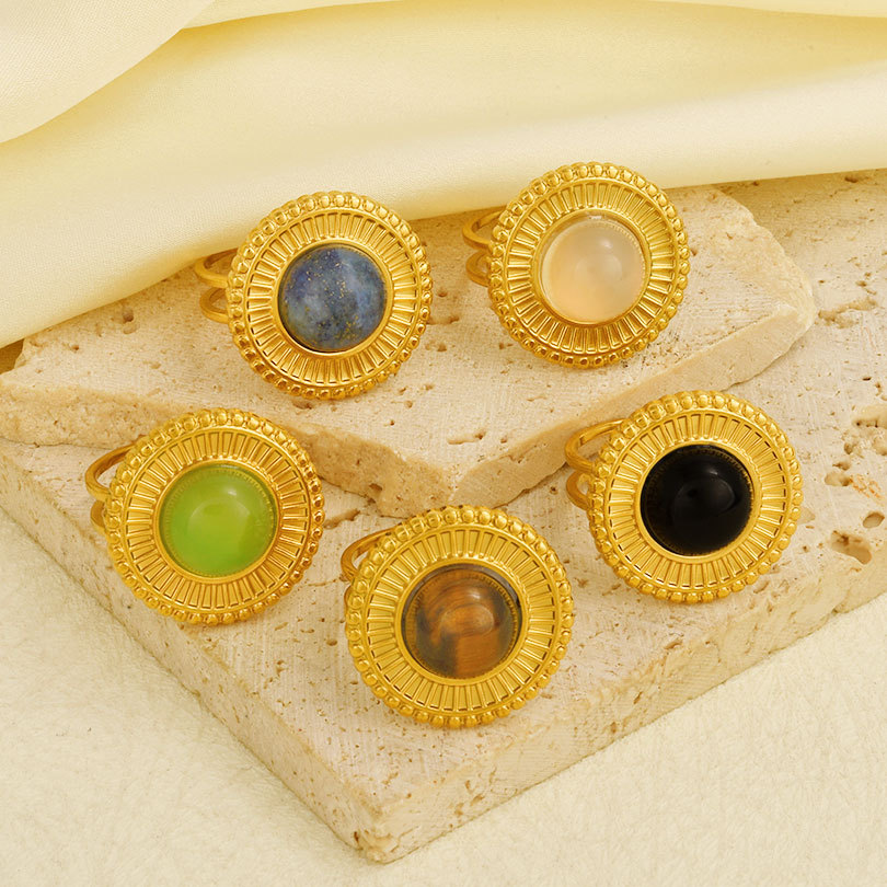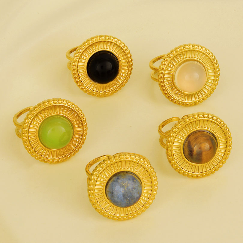 Pierre précieuse bague en acier inoxydable, Acier inoxydable 304, avec pierre gemme, Rond, Placage de couleur d'or, pour femme, plus de couleurs à choisir, Vendu par PC