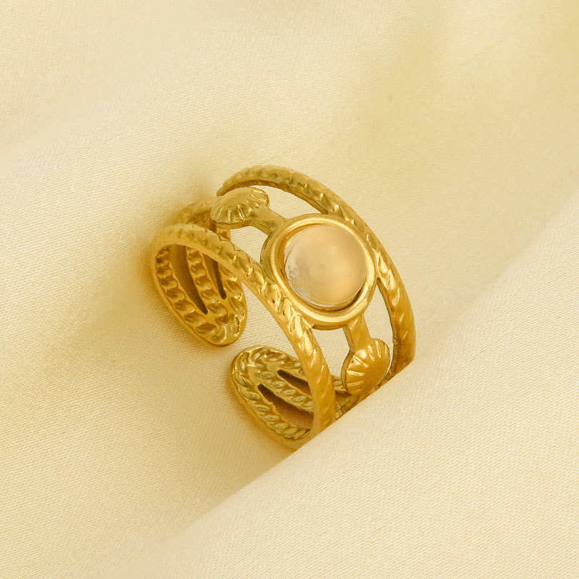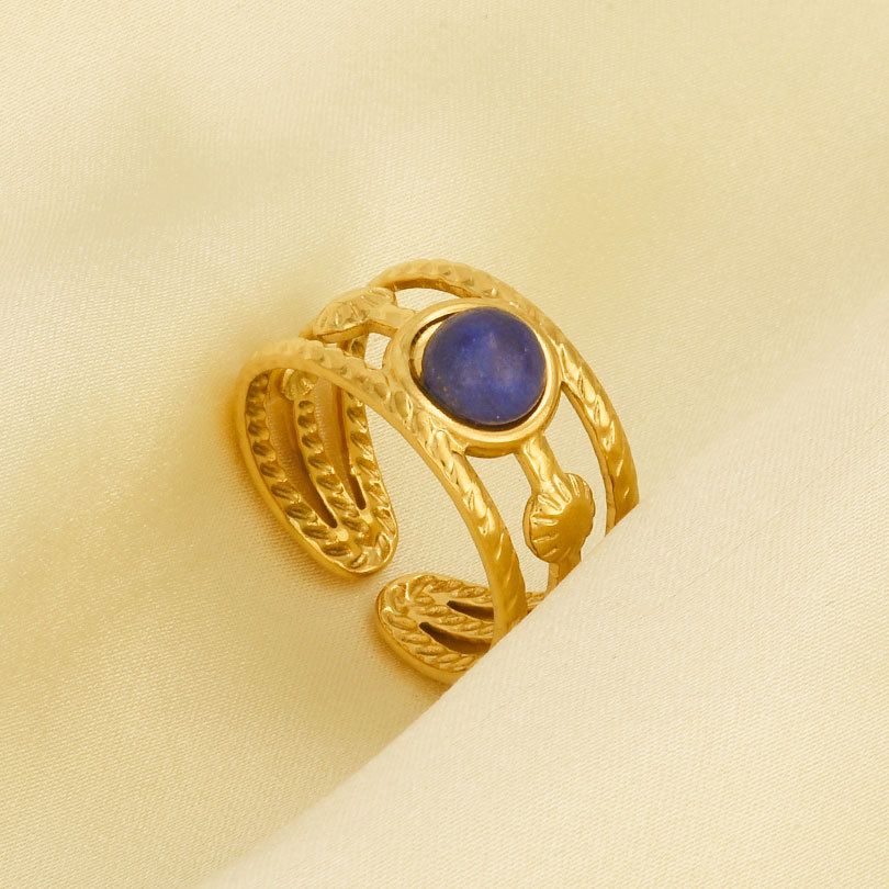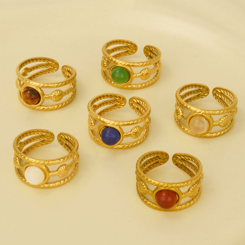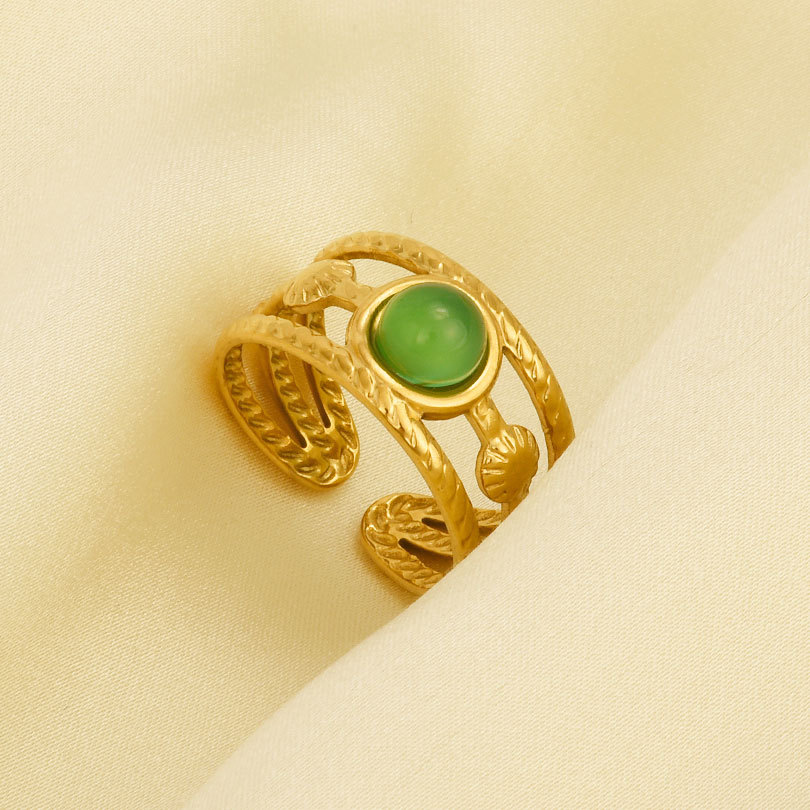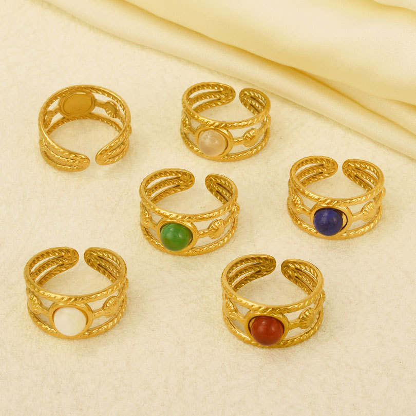 Pierre précieuse bague en acier inoxydable, Acier inoxydable 304, avec pierre gemme, Placage de couleur d'or, Réglable & pour femme, plus de couleurs à choisir, Vendu par PC